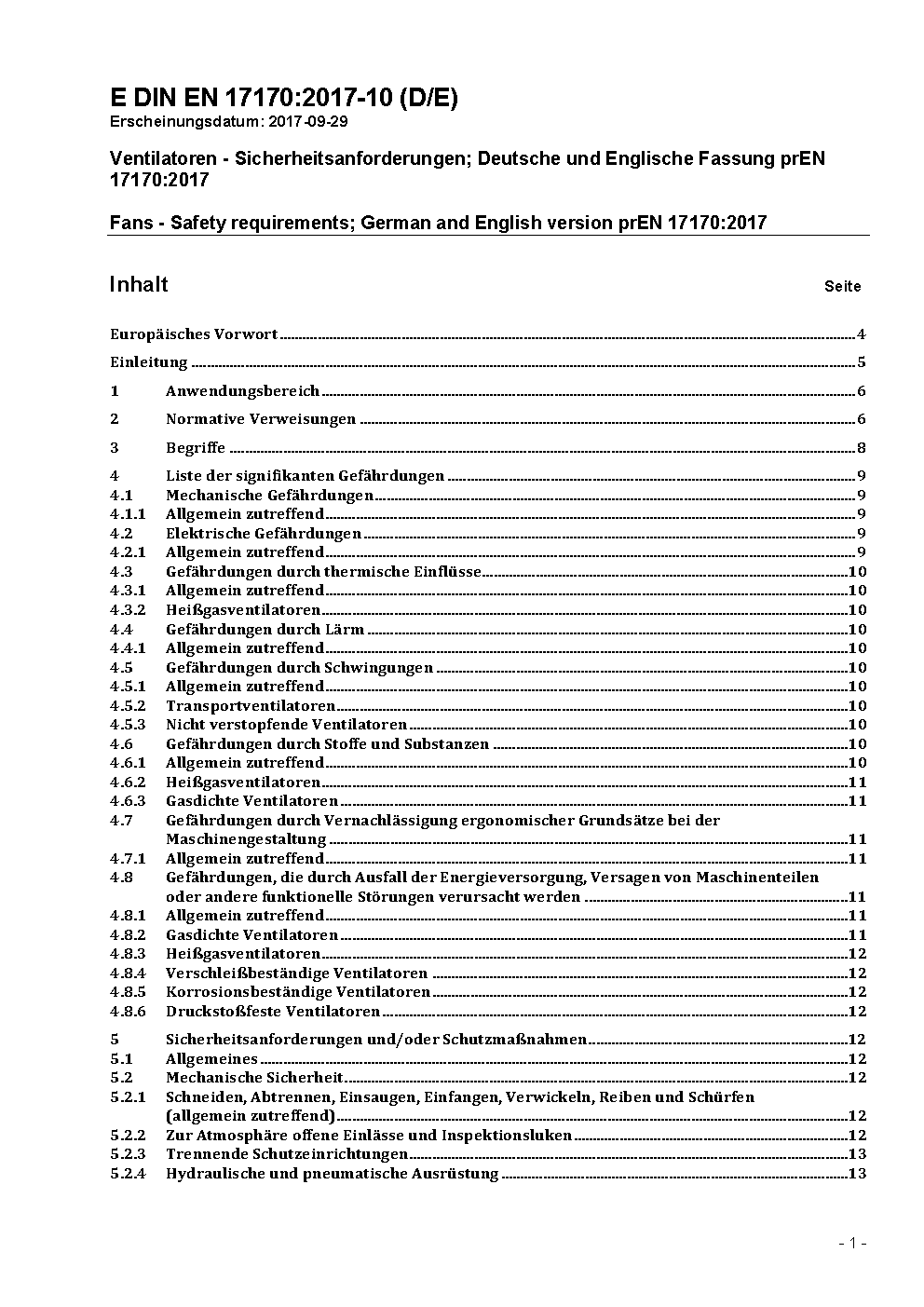 Ventilatoren - Sicherheitsanforderungen; Deutsche und Englische Fassung prEN 17170:2017