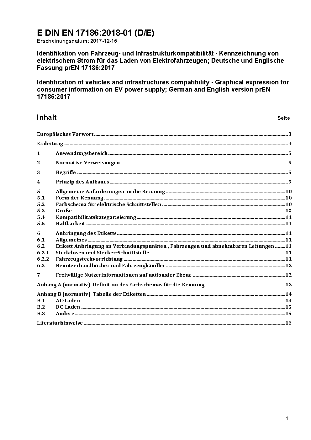 Identifikation von Fahrzeug- und Infrastrukturkompatibilität - Kennzeichnung von elektrischem Strom für das Laden von Elektrofahrzeugen; Deutsche und Englische Fassung prEN 17186:2017
