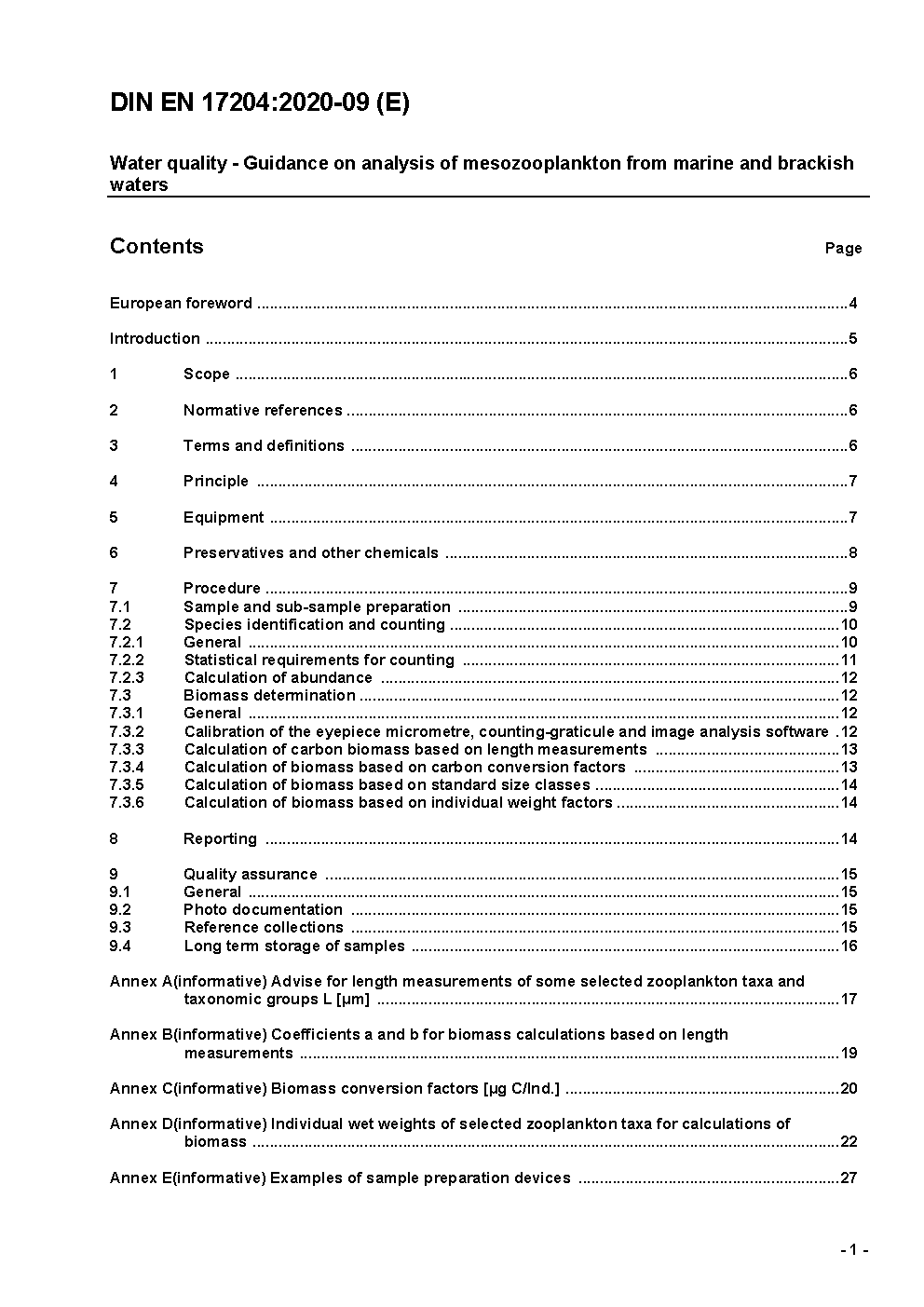 Water quality - Guidance on analysis of mesozooplankton from marine and brackish water; German and English version prEN 17204:2017