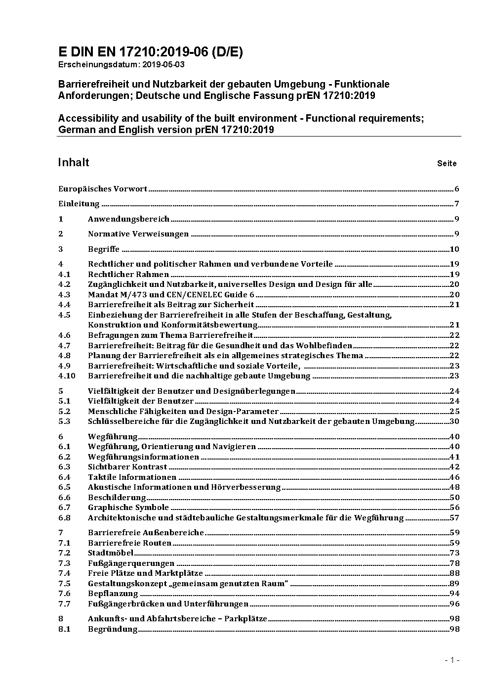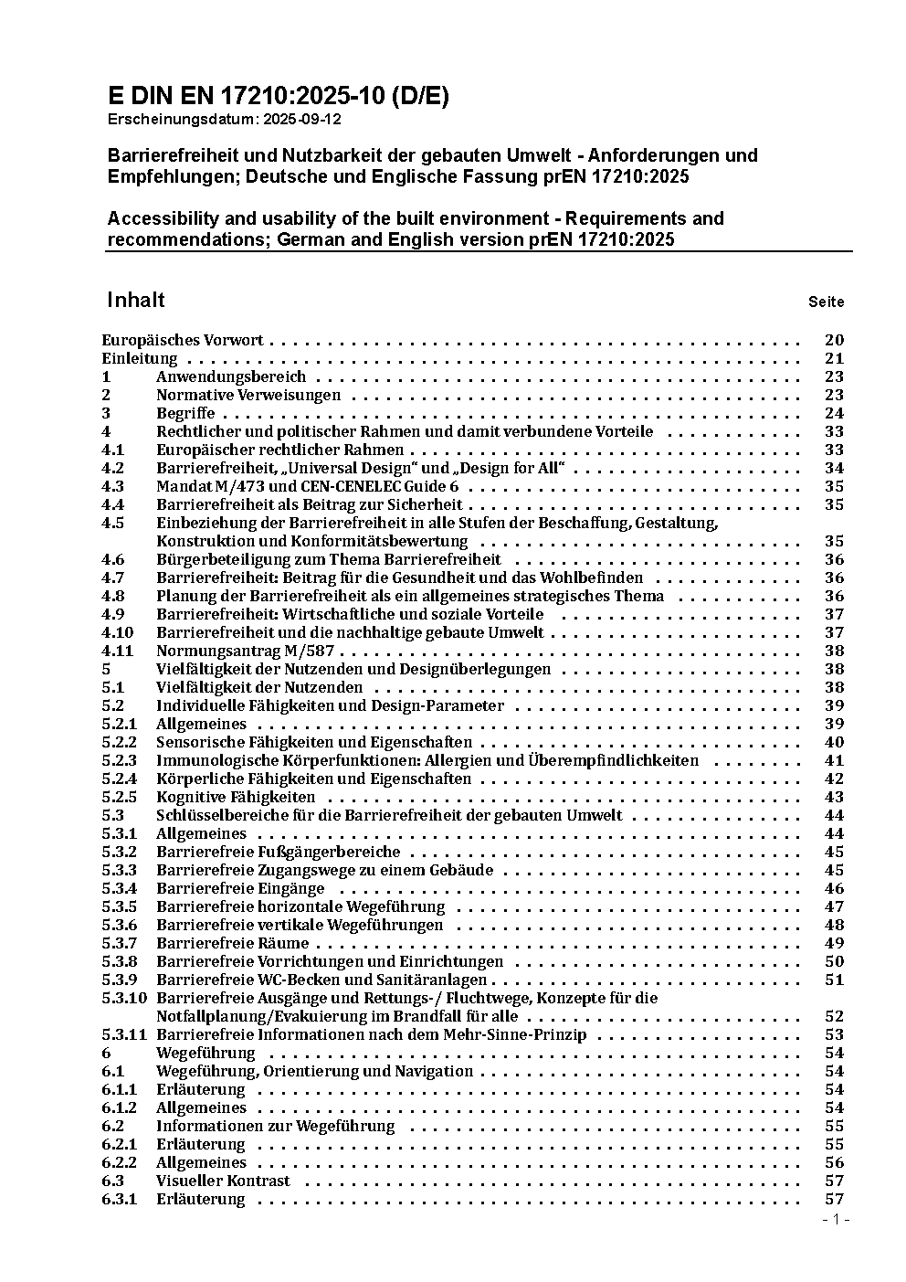 Barrierefreiheit und Nutzbarkeit der gebauten Umwelt - Anforderungen und Empfehlungen; Deutsche und Englische Fassung prEN 17210:2025