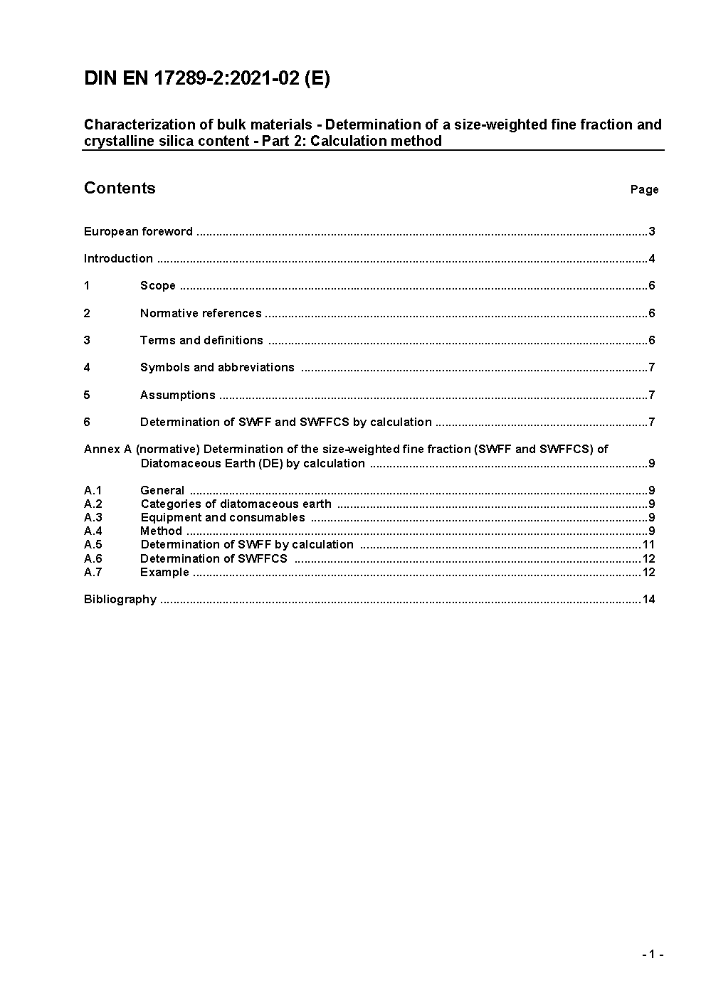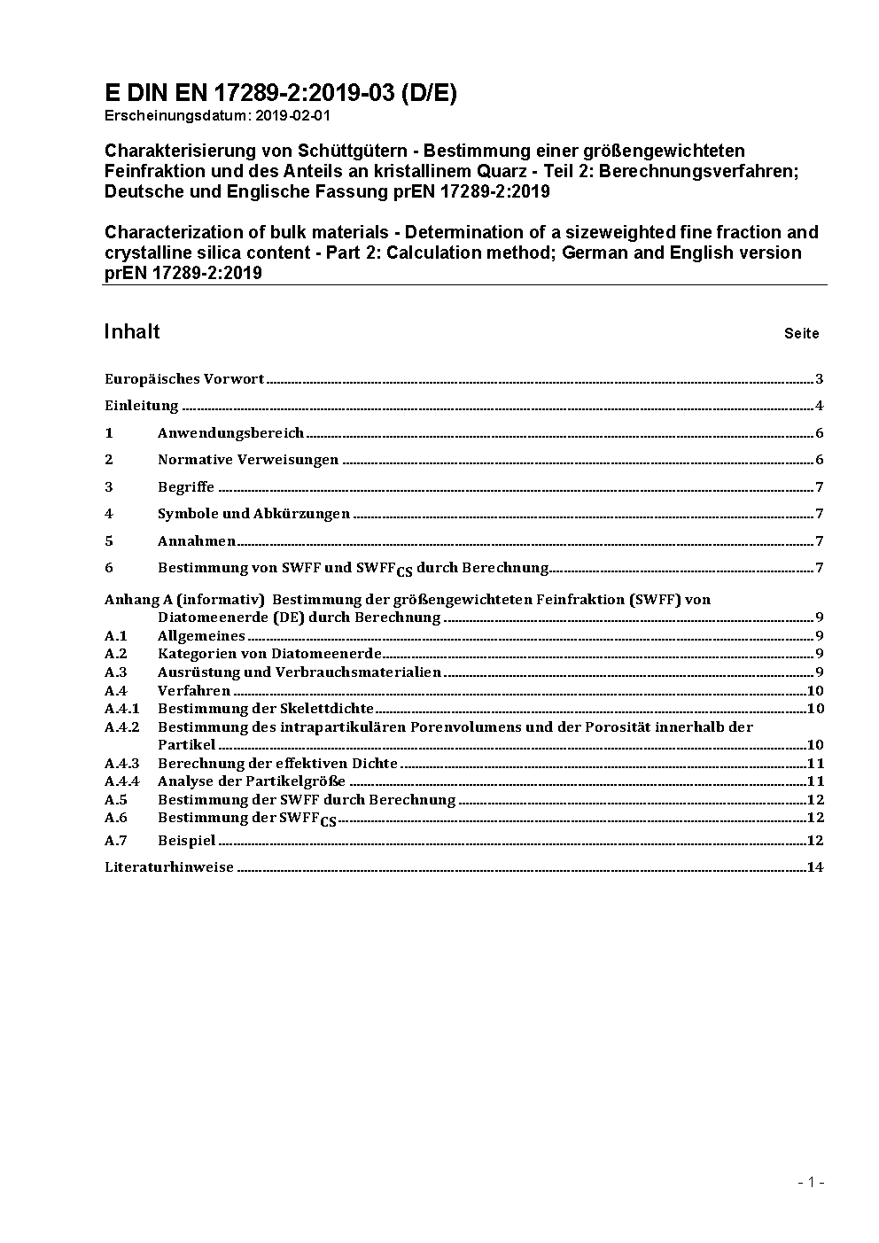 Charakterisierung von Schüttgütern - Bestimmung einer größengewichteten Feinfraktion und des Anteils an kristallinem Quarz - Teil 2: Berechnungsverfahren; Deutsche Fassung EN 17289-2:2020