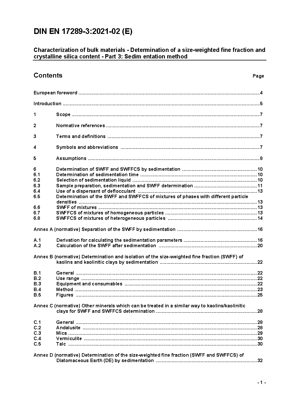 Characterization of bulk materials - Determination of a size-weighted fine fraction and crystalline silica content - Part 3: Sedimentation method; German version EN 17289-3:2020