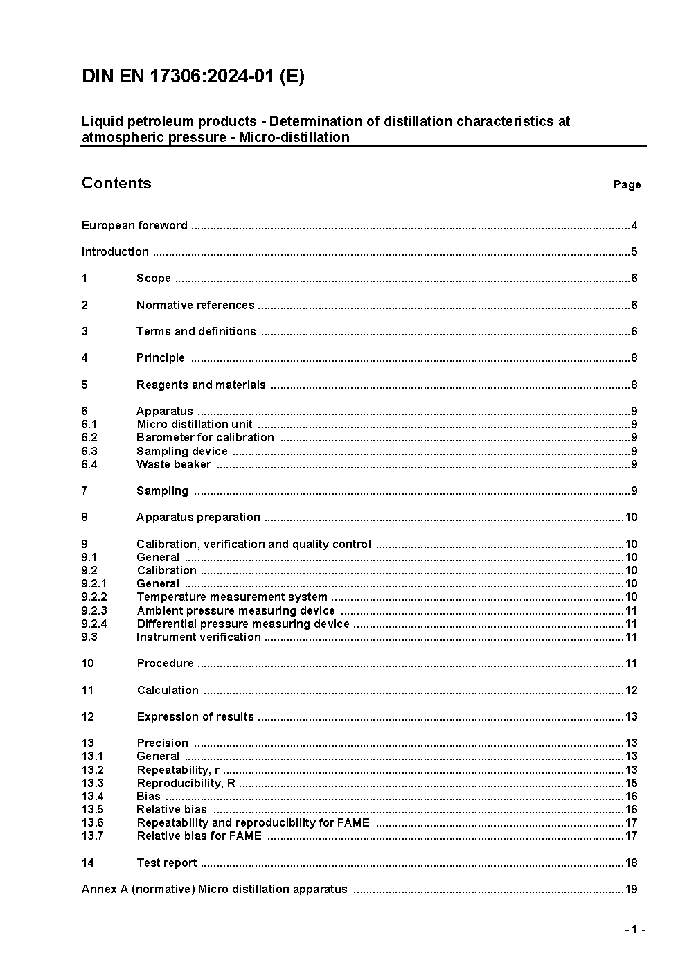 Liquid petroleum products - Determination of distillation characteristics at atmospheric pressure - Micro-distillation; German and English version prEN 17306:2018