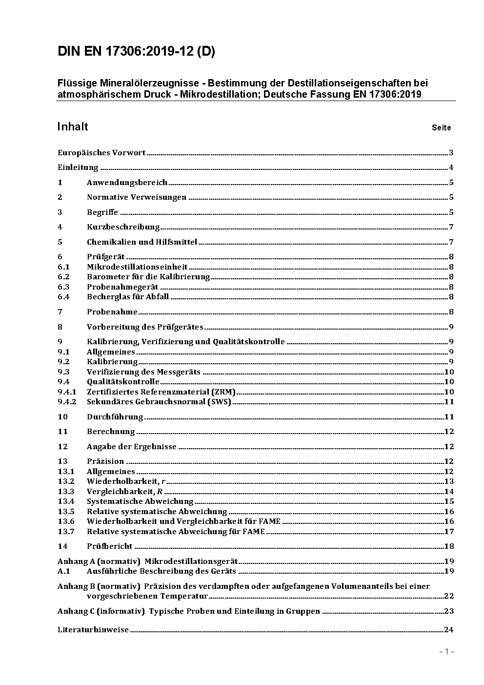 Flüssige Mineralölerzeugnisse - Bestimmung der Destillationseigenschaften bei atmosphärischem Druck - Mikrodestillation; Deutsche und Englische Fassung prEN 17306:2018