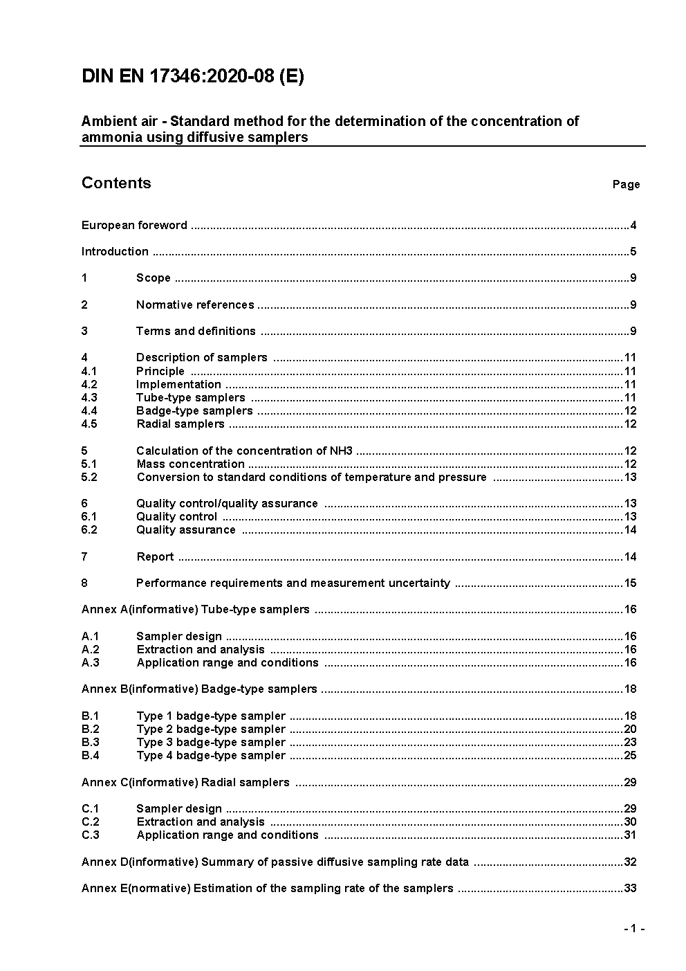 Ambient air - Standard method for the determination of the concentration of ammonia using diffusive samplers; German version EN 17346:2020