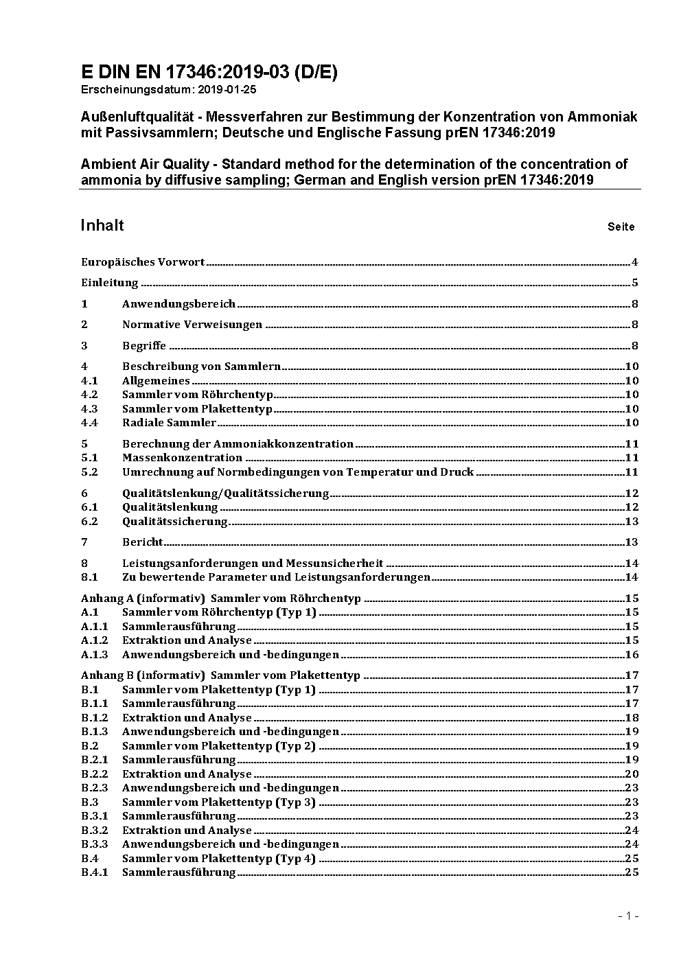 Außenluft - Messverfahren zur Bestimmung der Konzentration von Ammoniak mit Passivsammlern; Deutsche Fassung EN 17346:2020
