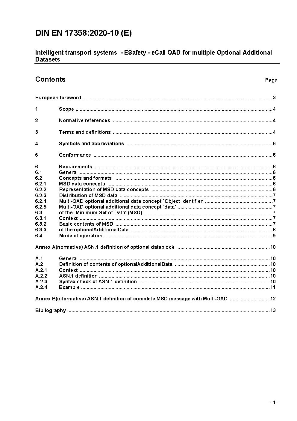 Intelligent transport systems - ESafety - eCall OAD for multiple Optional Additional Datasets; German version EN 17358:2020