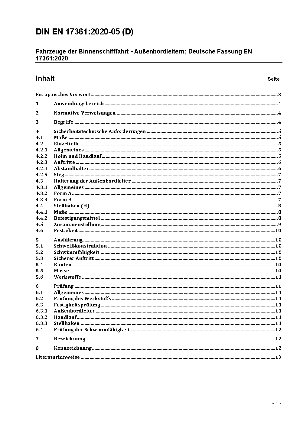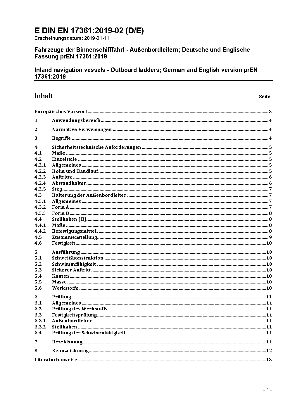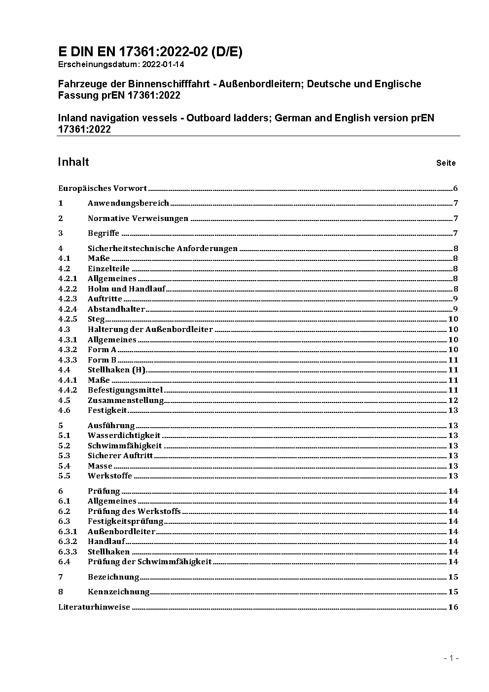 Fahrzeuge der Binnenschifffahrt - Außenbordleitern; Deutsche und Englische Fassung prEN 17361:2022