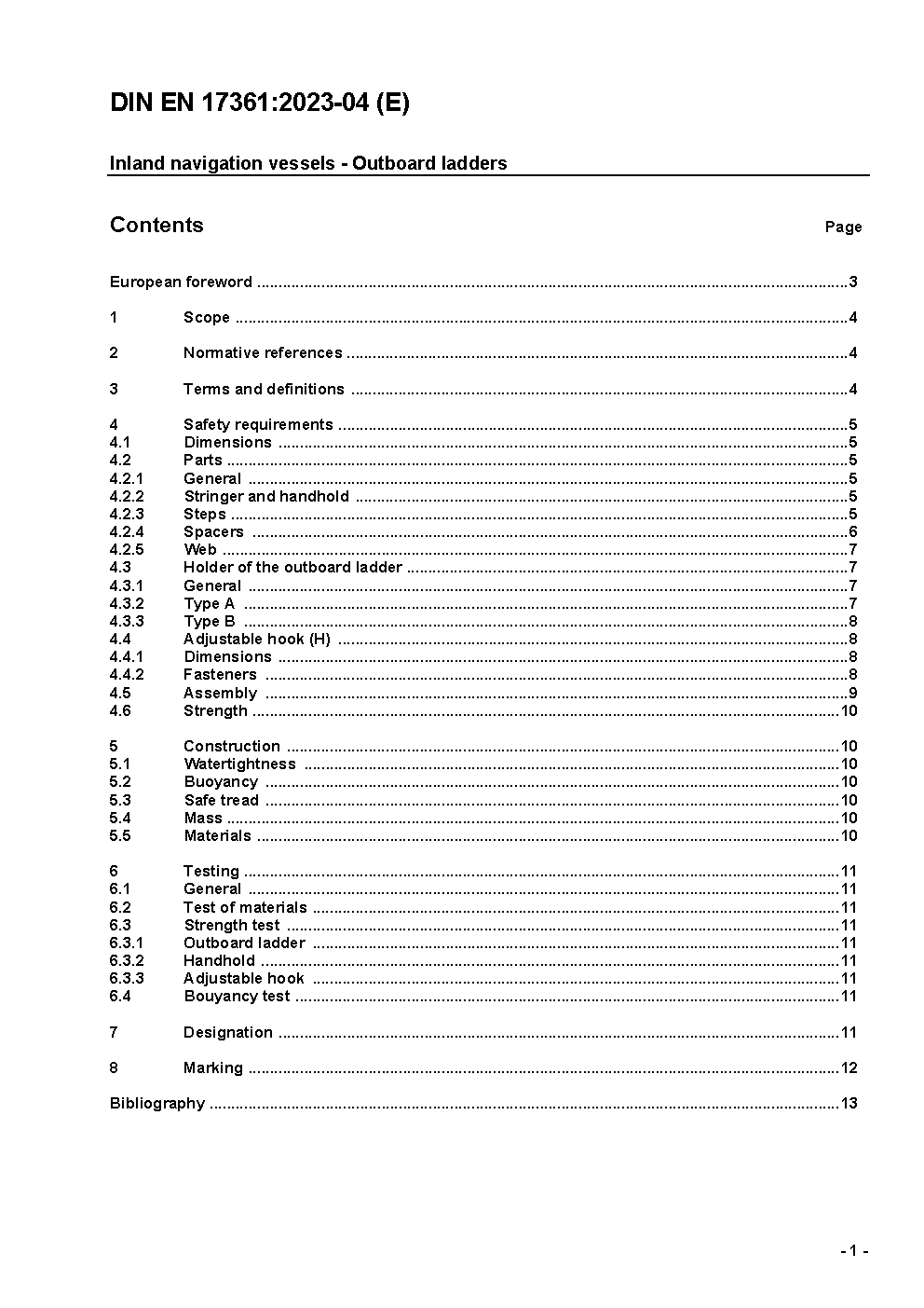 Inland navigation vessels - Outboard ladders; German and English version prEN 17361:2022