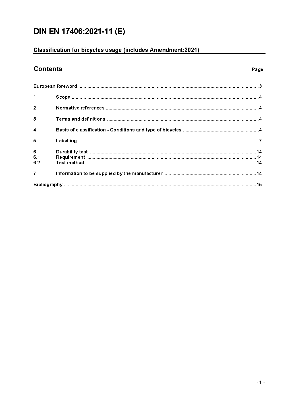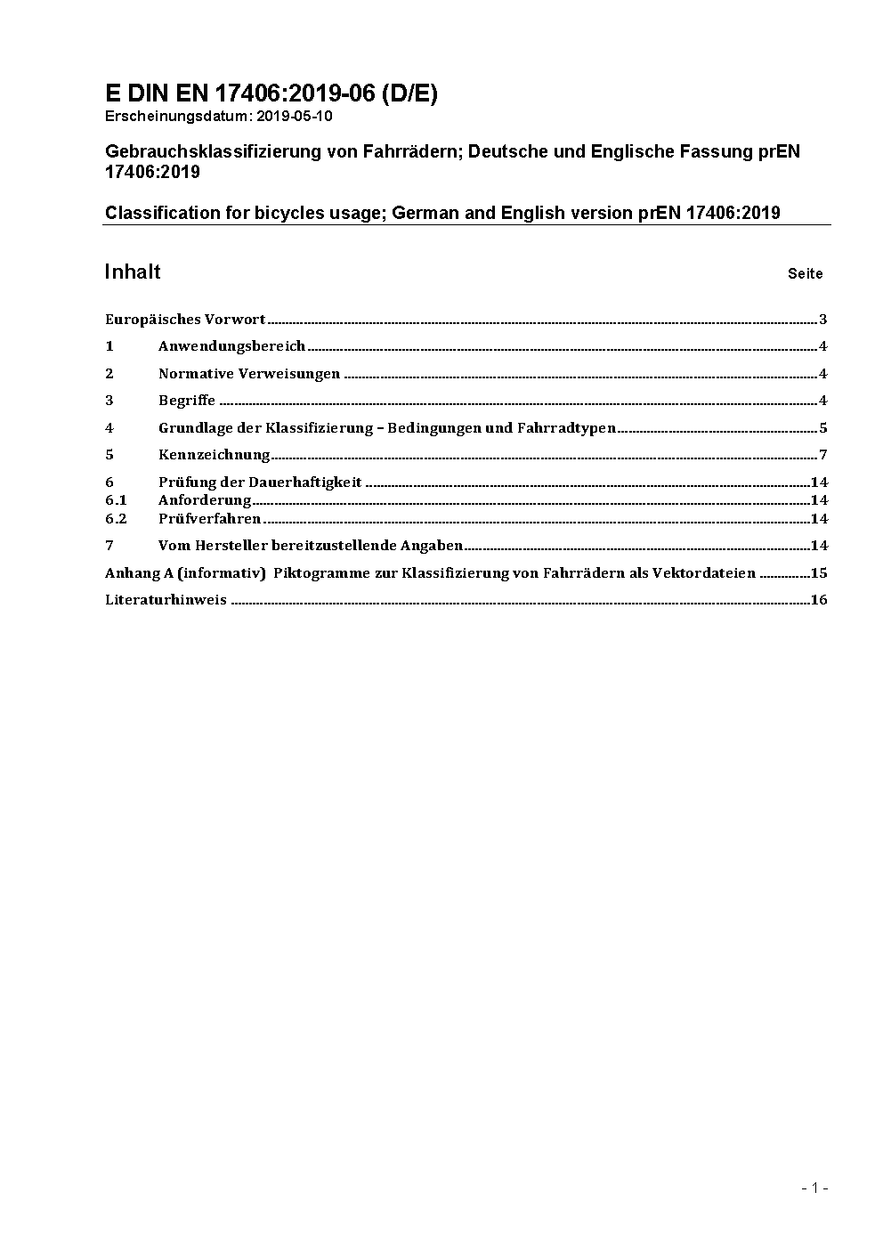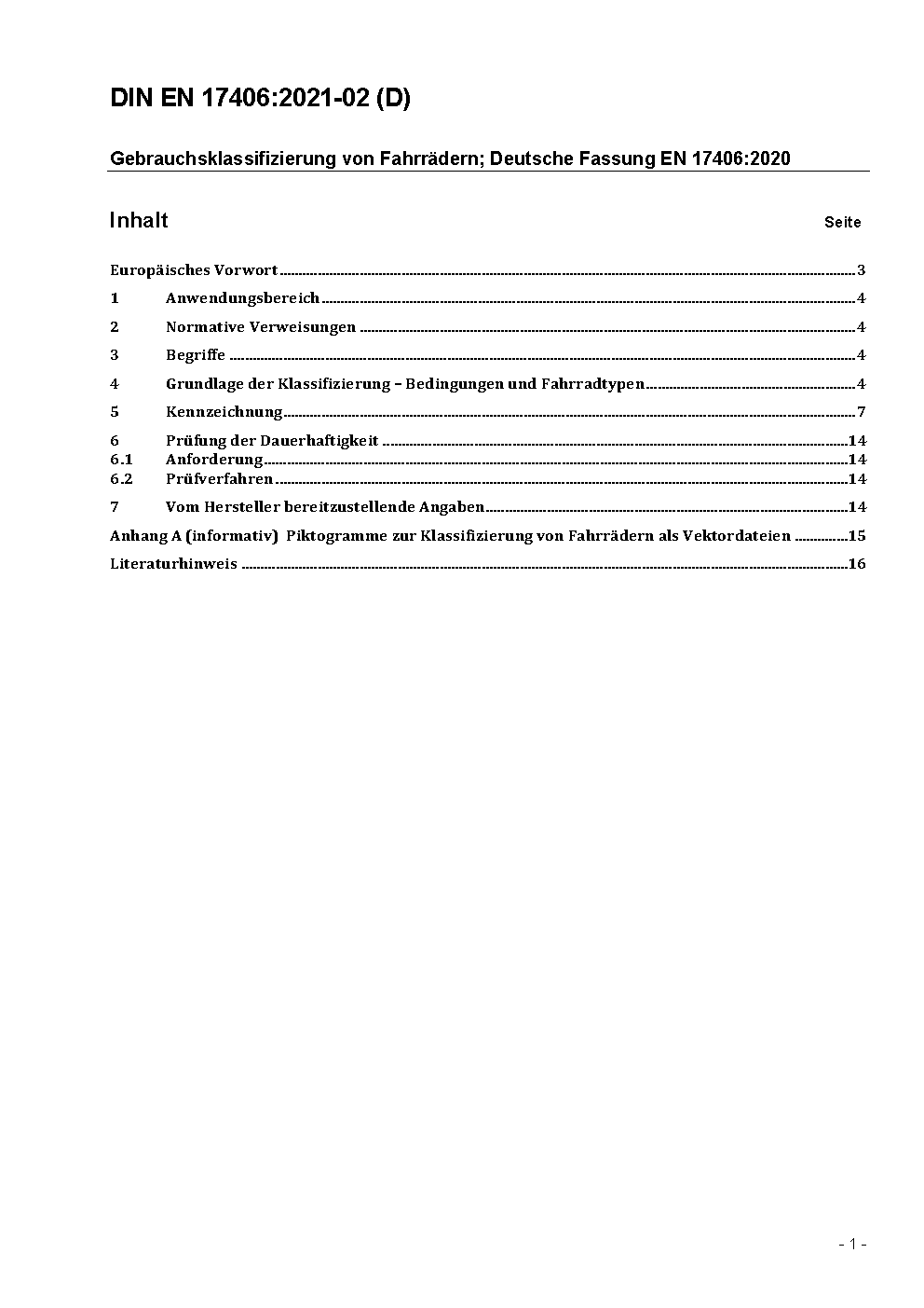 Classification for bicycles usage; German version EN 17406:2020