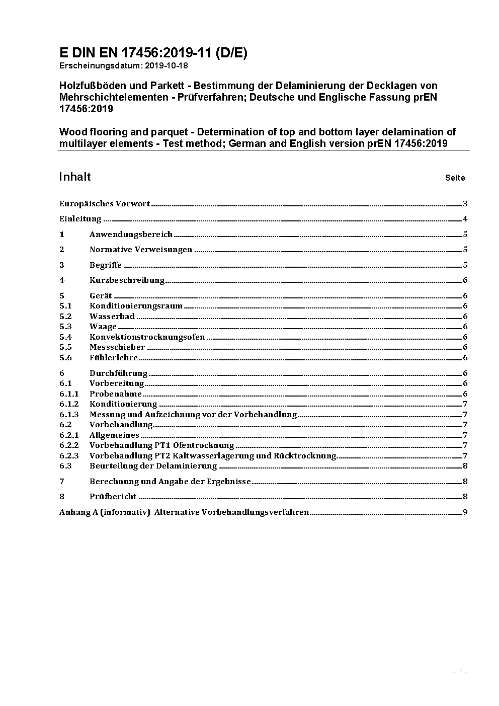 Holzfußböden und Parkett - Bestimmung der Delaminierung der Decklagen von Mehrschichtelementen - Prüfverfahren; Deutsche Fassung EN 17456:2021