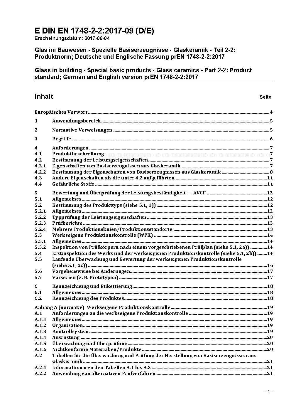 Glas im Bauwesen - Spezielle Basiserzeugnisse - Teil 2-2: Glaskeramik; Konformitätsbewertung; Deutsche Fassung prEN 1748-2-2:2001