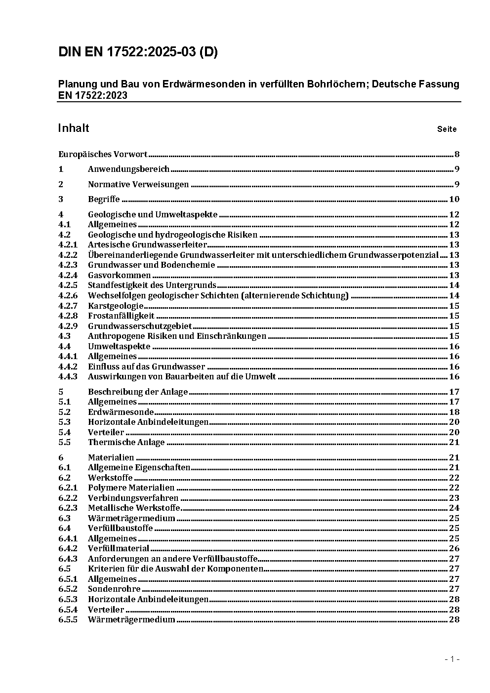 Planung und Bau von Erdwärmesonden; Deutsche und Englische Fassung prEN 17522:2020