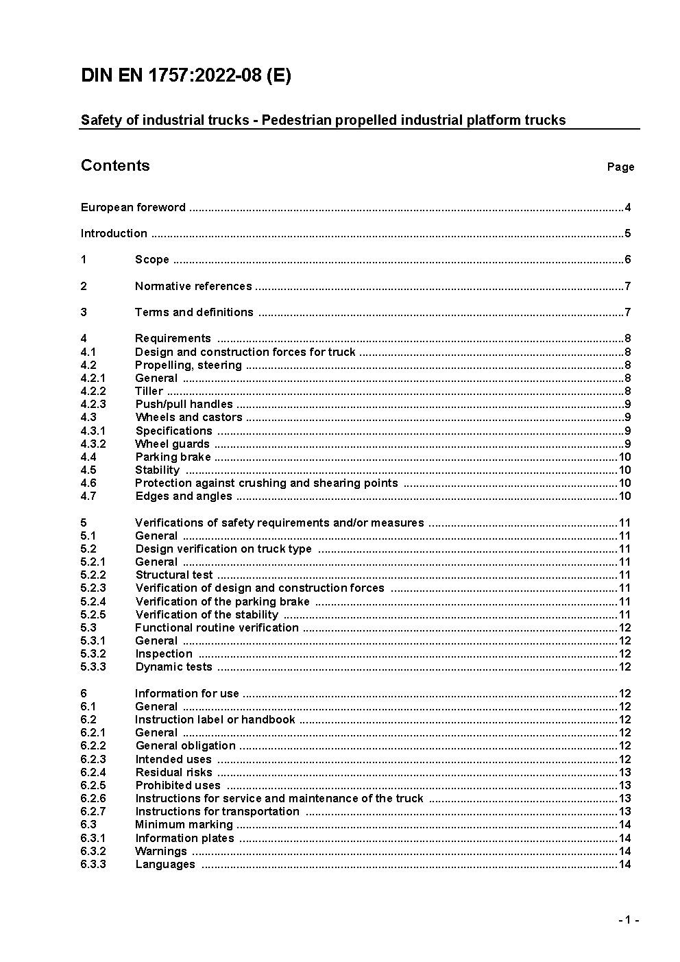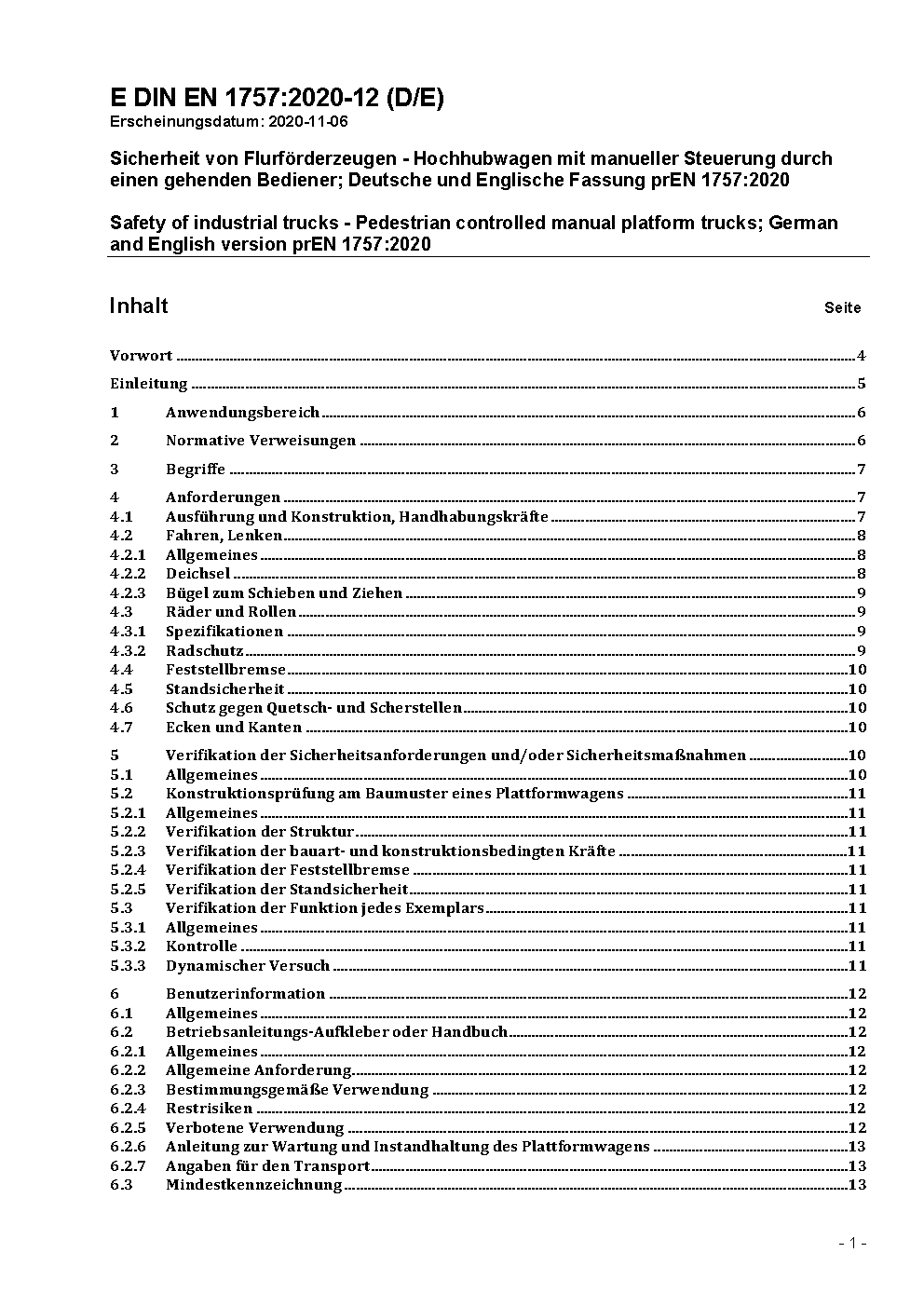 Safety of industrial trucks - Pedestrian propelled industrial platform trucks; German version EN 1757:2022
