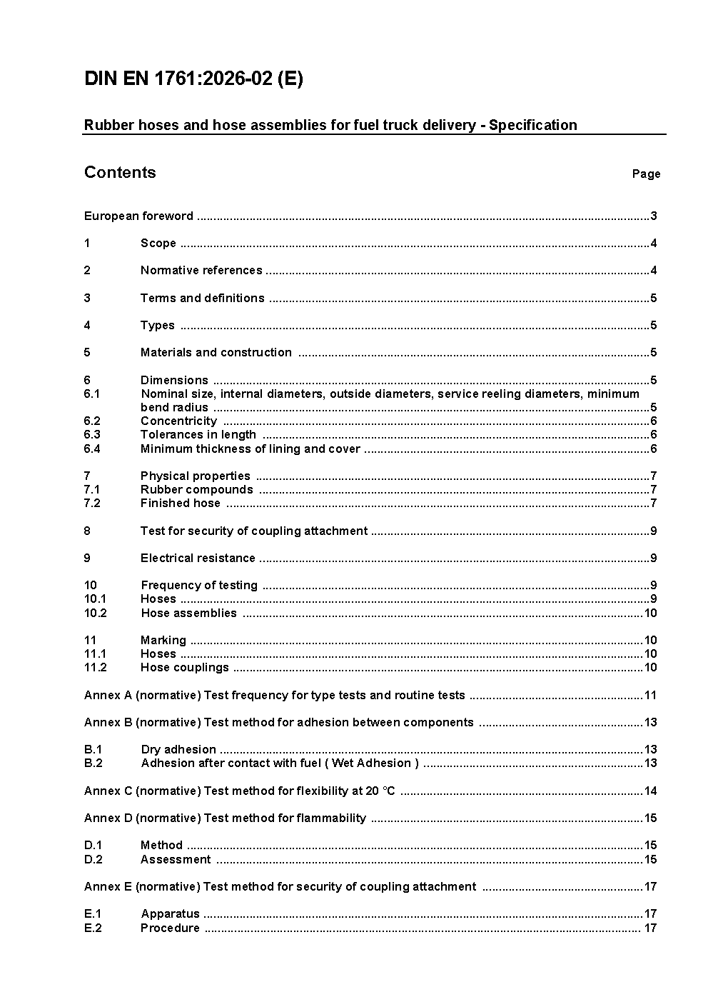 Rubber hoses and hose assemblies for fuel truck delivery - Specification; German version EN 1761:1999
