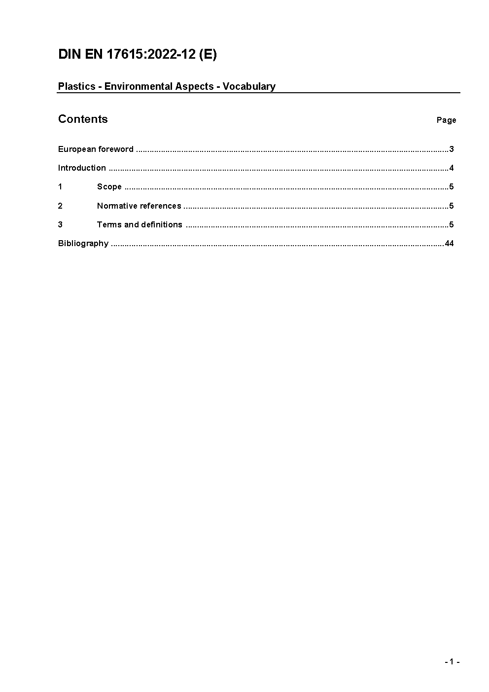 Plastics - Environmental Aspects - Vocabulary; German and English version prEN 17615:2020