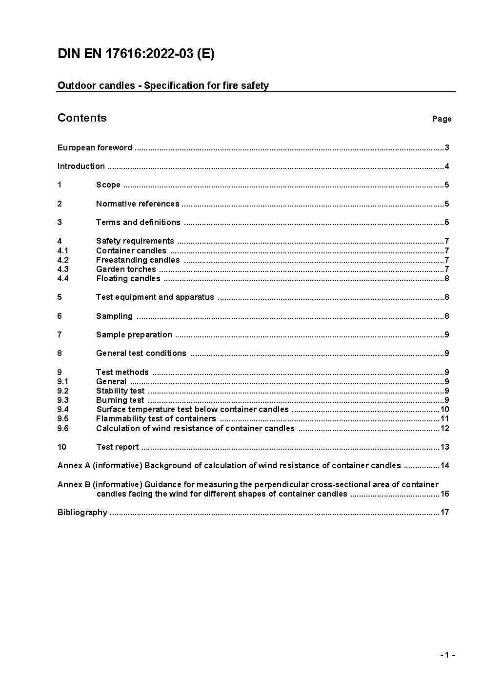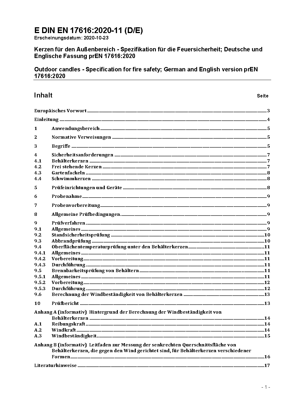 Outdoor candles - Specification for fire safety; German version EN 17616:2021
