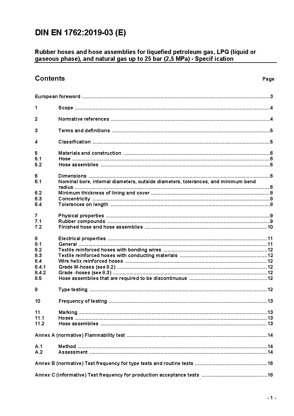 Rubber hoses and hose assemblies for liquefied petroleum gas, LPG (liquid or gaseous phase) and natural gas up to 25 bar (2,5 MPa) - Specification; German version EN 1762:2003