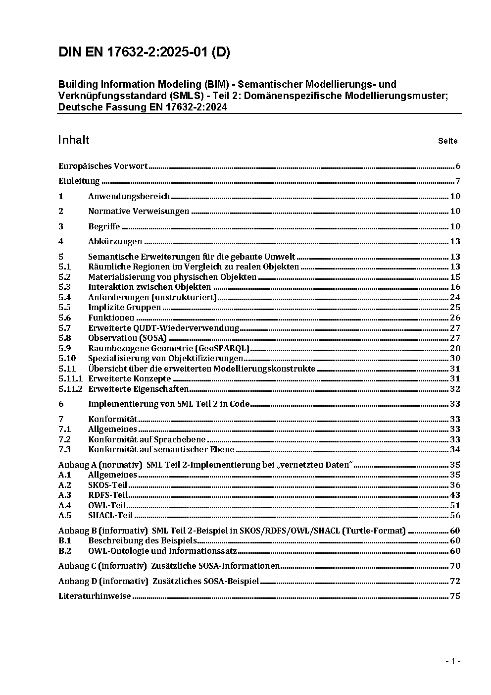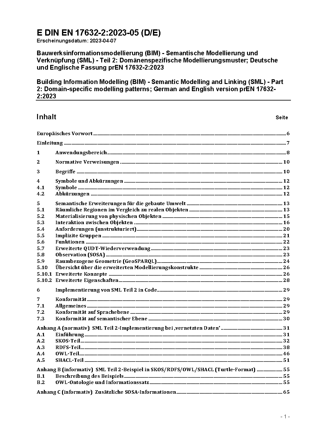 Building Information Modelling (BIM) - Semantic Modelling and Linking (SML) - Part 2: Domain-specific modelling patterns; German and English version prEN 17632-2:2023
