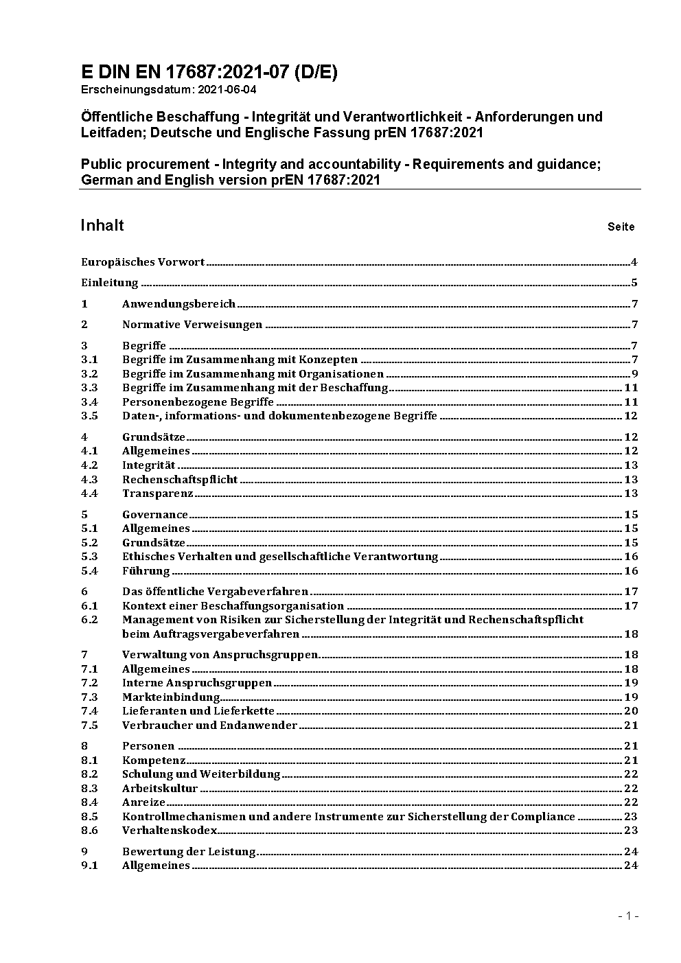 Public procurement - Integrity and accountability - Requirements and guidance; German version EN 17687:2022
