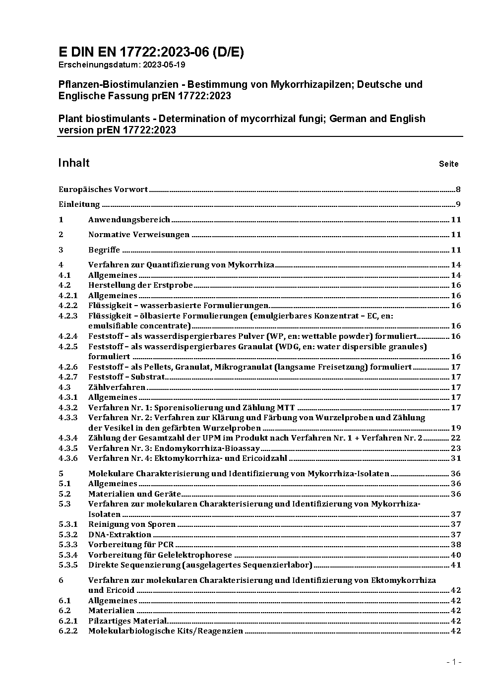 Pflanzen-Biostimulanzien - Bestimmung von Mykorrhizapilzen; Deutsche und Englische Fassung prEN 17722:2023