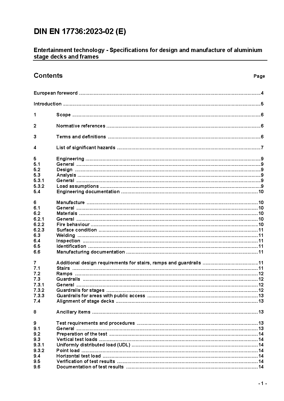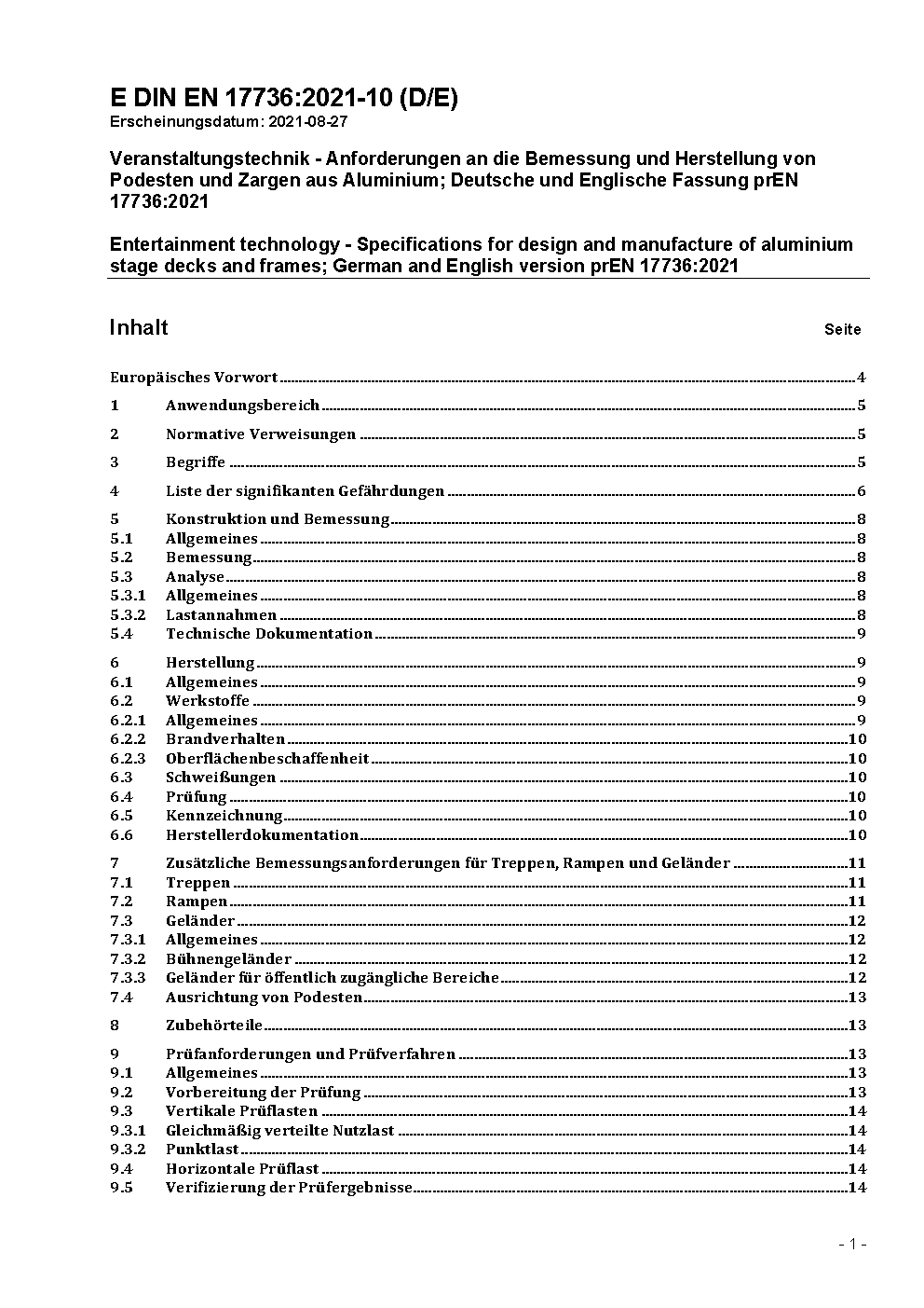 Entertainment technology - Specifications for design and manufacture of aluminium stage decks and frames; German version EN 17736:2022
