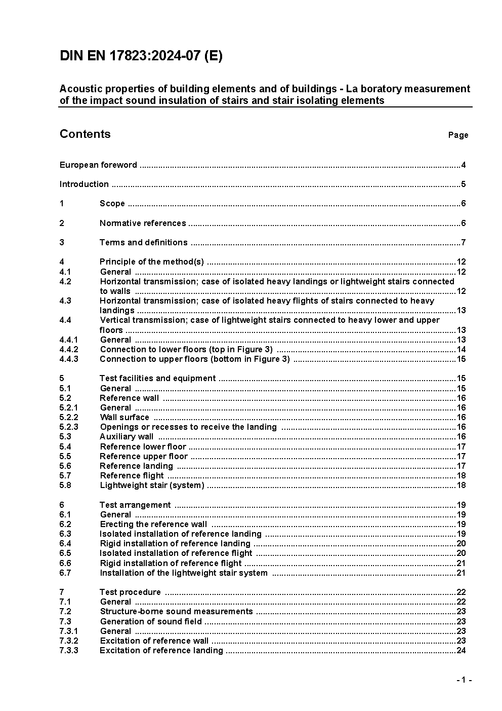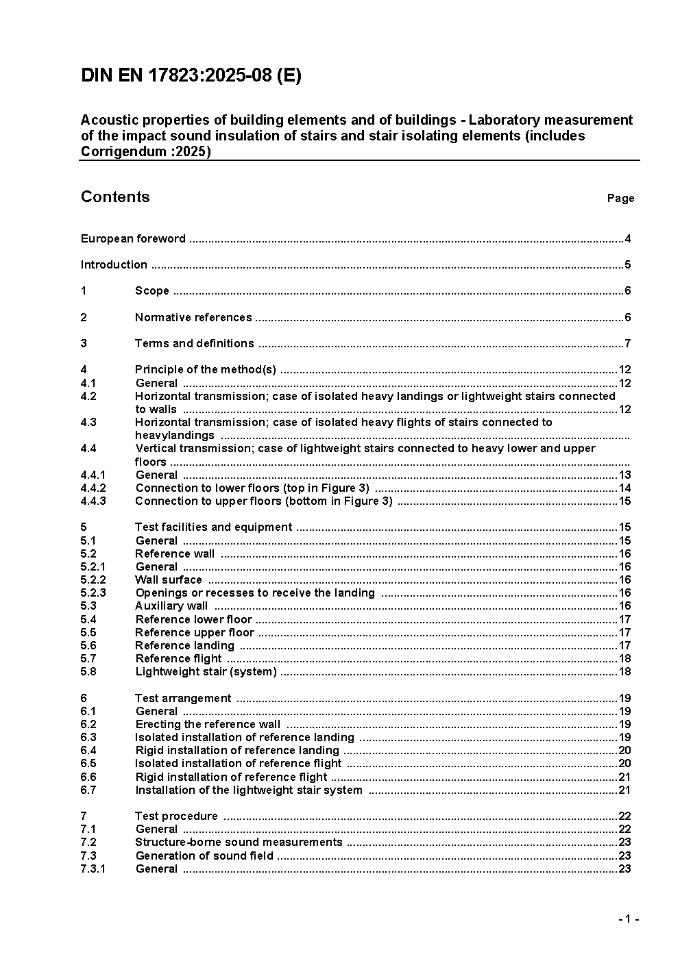 Acoustic properties of building elements and of buildings - Laboratory measurement of the impact sound insulation of stairs and stair isolating elements; German and English version prEN 17823:2022