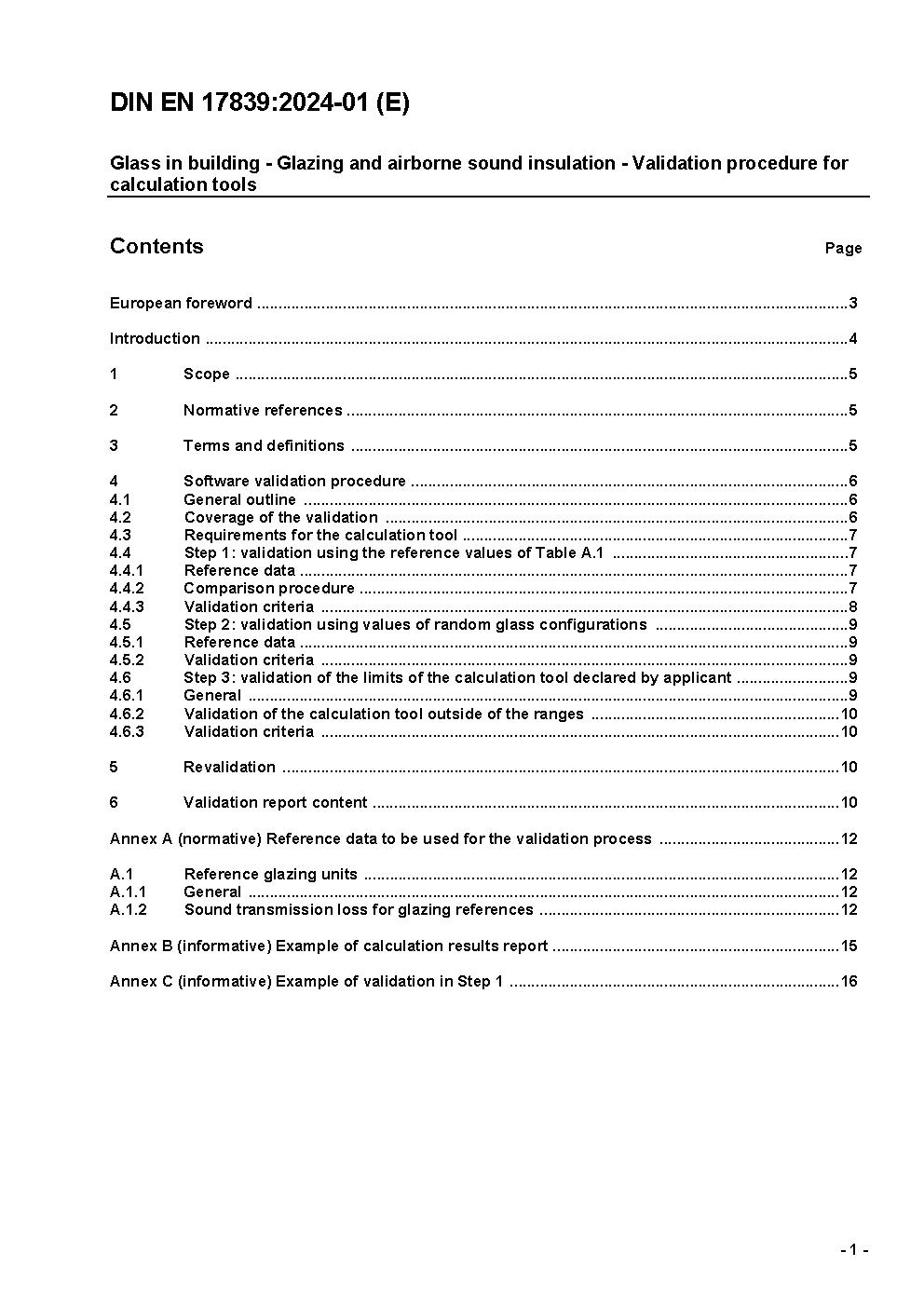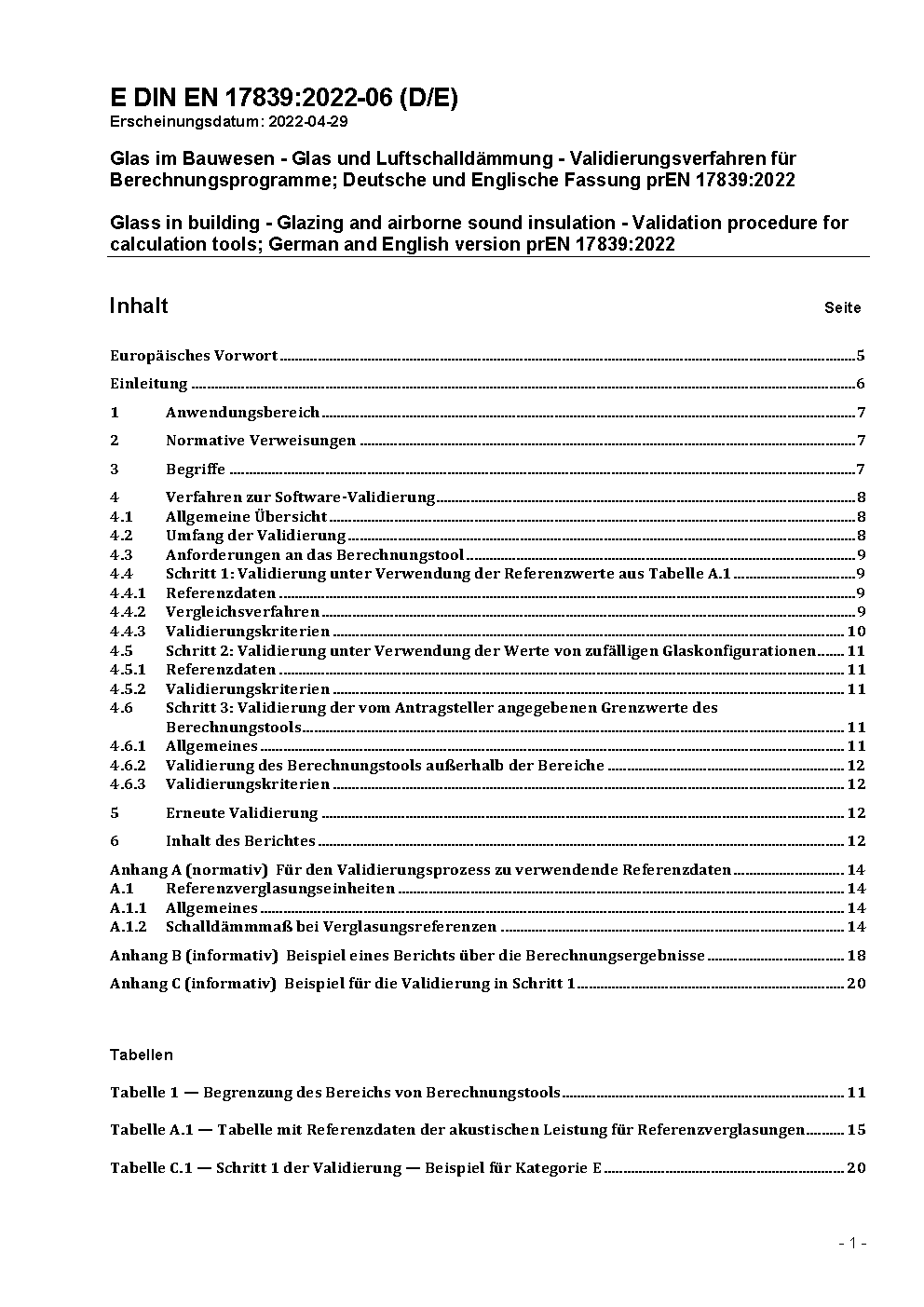 Glass in building - Glazing and airborne sound insulation - Validation procedure for calculation tools; German and English version prEN 17839:2022