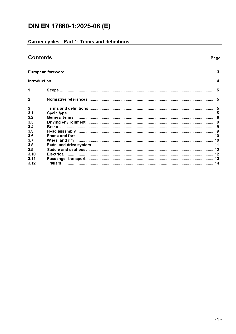 Carrier cycles - Part 1: Terms and definitions; German and English version prEN 17860-1:2022