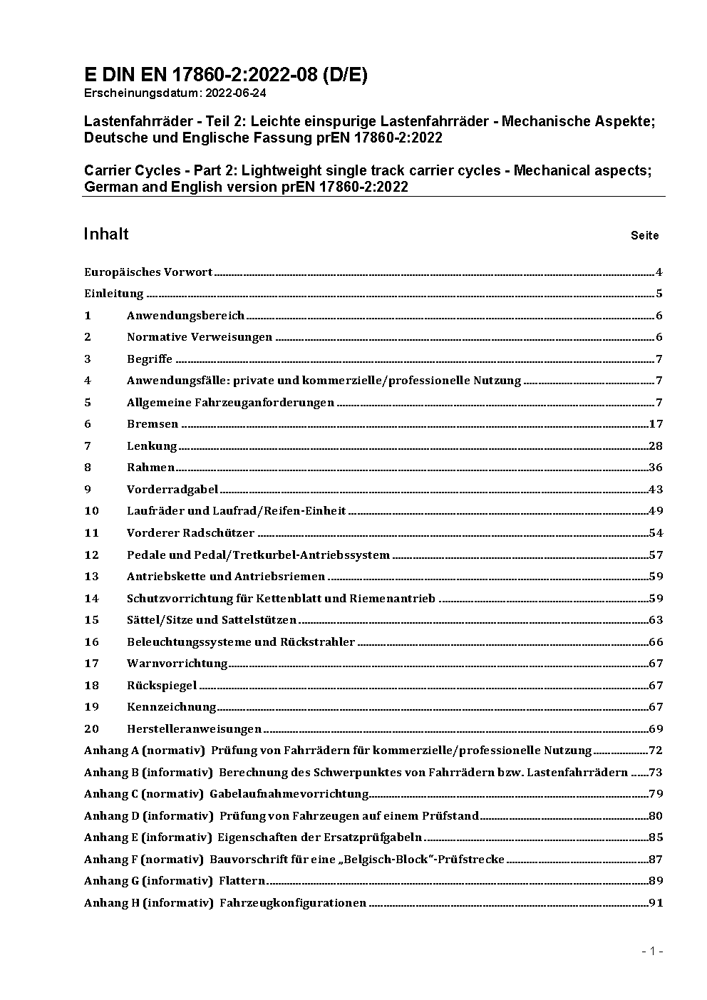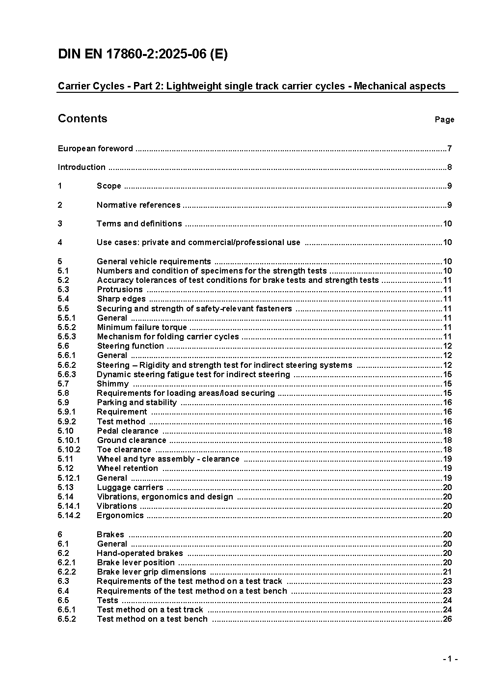 Carrier Cycles - Part 2: Lightweight single track carrier cycles - Mechanical aspects; German and English version EN 17860-2:2024/prA1:2025