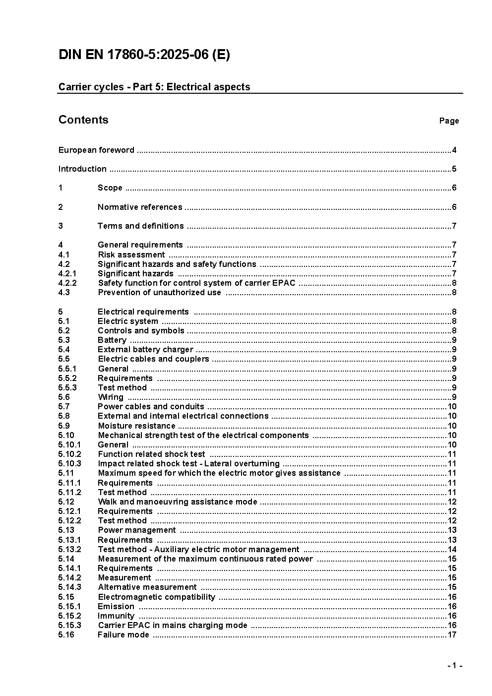 Carrier cycles - Part 5: Electrical aspects; German and English version prEN 17860-5:2023
