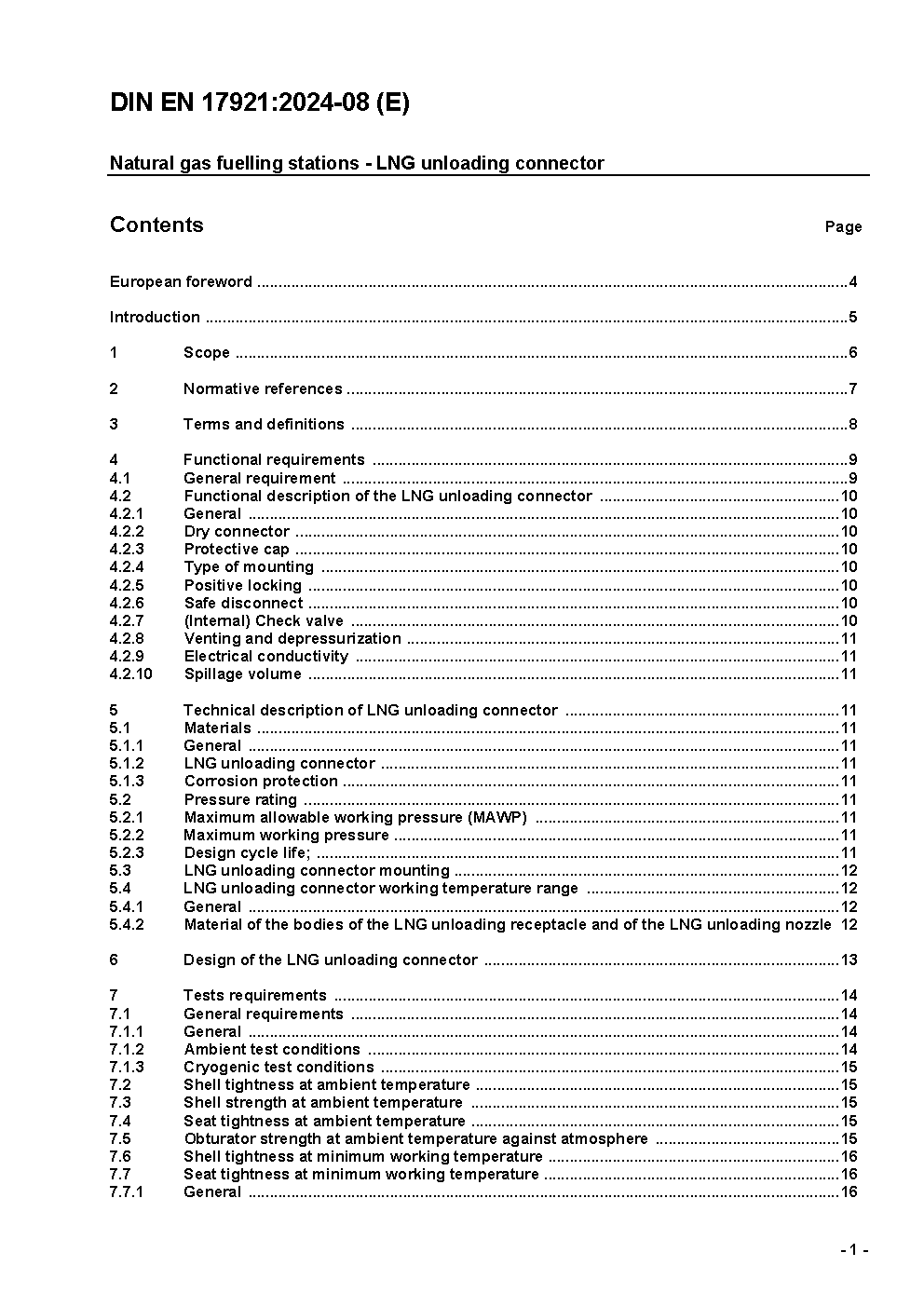 Natural gas vehicles - Fuelling and operation - Natural gas fuelling stations - LNG unloading connector; German and English version prEN 17921:2022