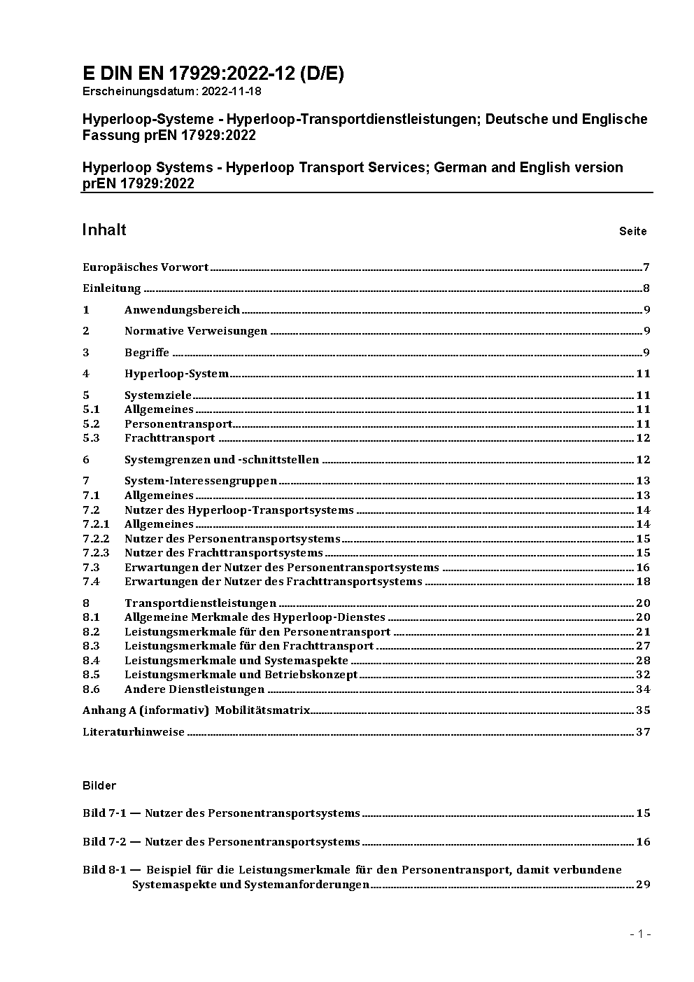 Hyperloop-Transportdienstleistungen; Deutsche Fassung EN 17929:2024