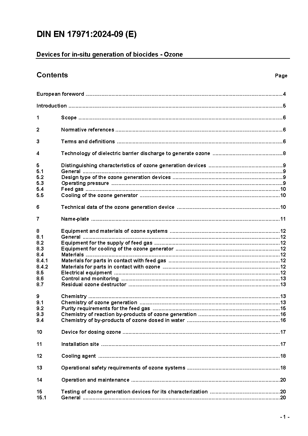 Anlagen zur In-Situ-Erzeugung von Bioziden - Ozon; Deutsche Fassung EN 17971:2024 / Achtung: Diese Norm ist Bestandteil des DVGW Regelwerks.