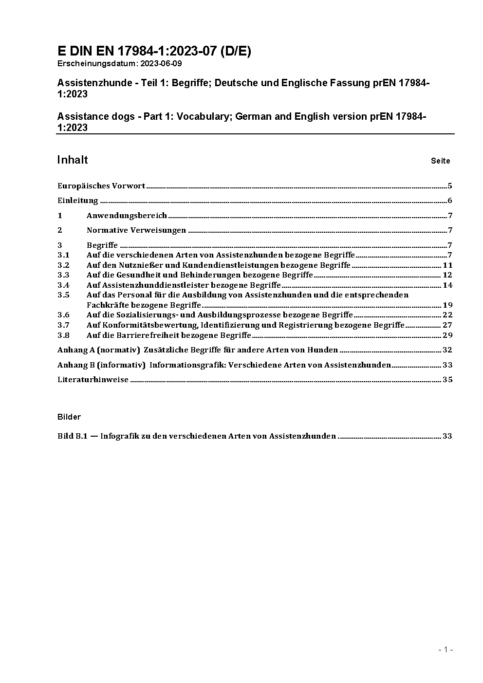 Assistenzhunde - Teil 1: Begriffe; Deutsche und Englische Fassung prEN 17984-1:2023