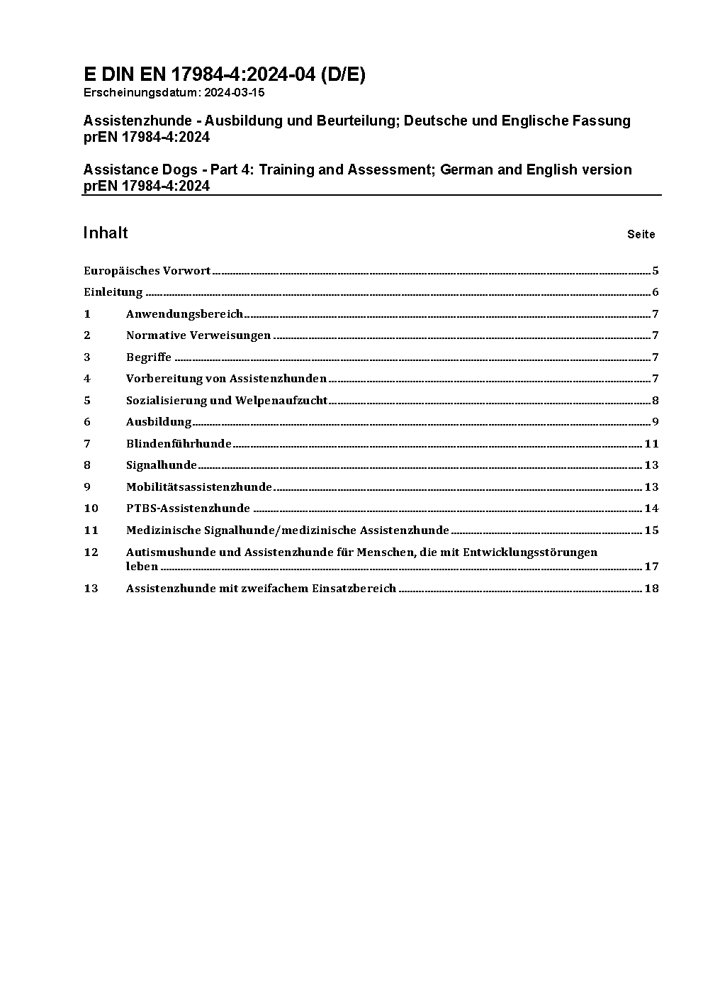 Assistenzhunde - Ausbildung und Beurteilung; Deutsche und Englische Fassung prEN 17984-4:2024