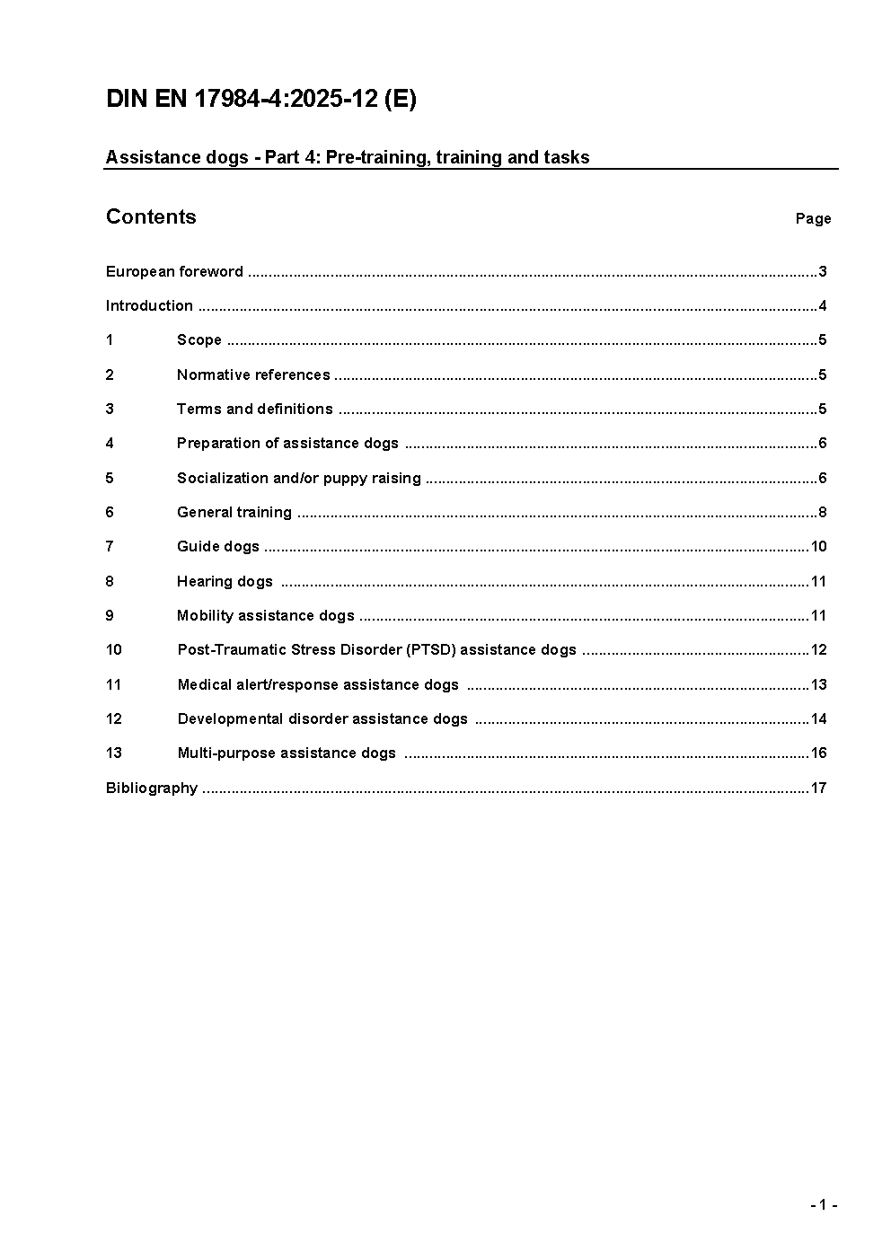 Assistance Dogs - Part 4: Training and Assessment; German and English version prEN 17984-4:2024