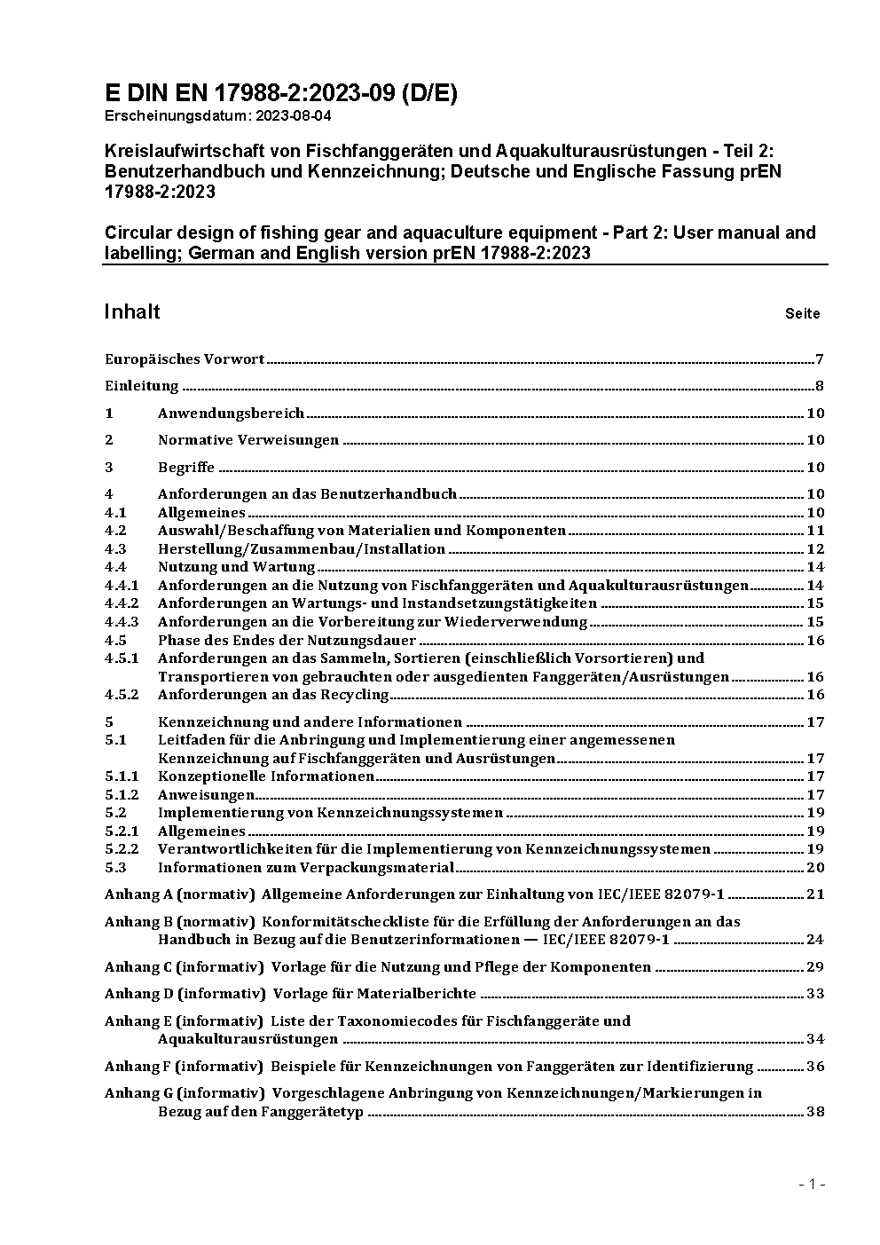 Circular design of fishing gear and aquaculture equipment - Part 2: User manual and labelling; German and English version prEN 17988-2:2023