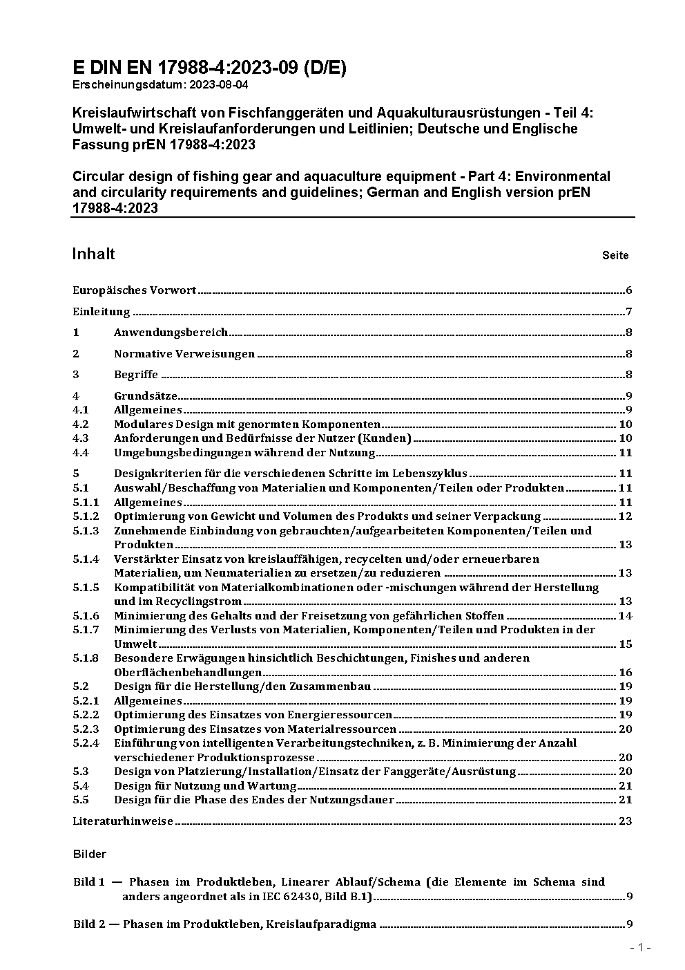 Circular design of fishing gear and aquaculture equipment - Part 4: Environmental and circularity requirements and guidelines; German and English version prEN 17988-4:2023