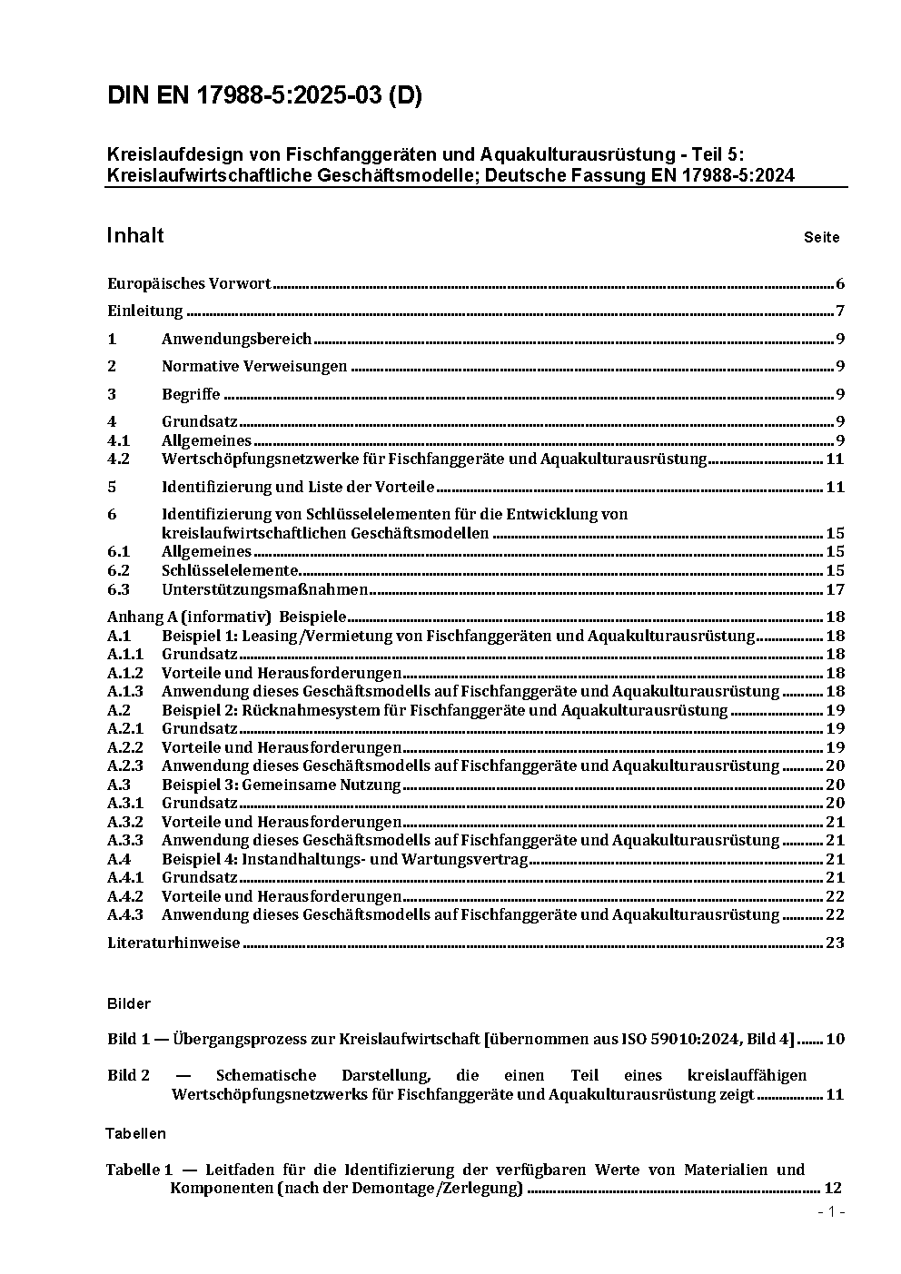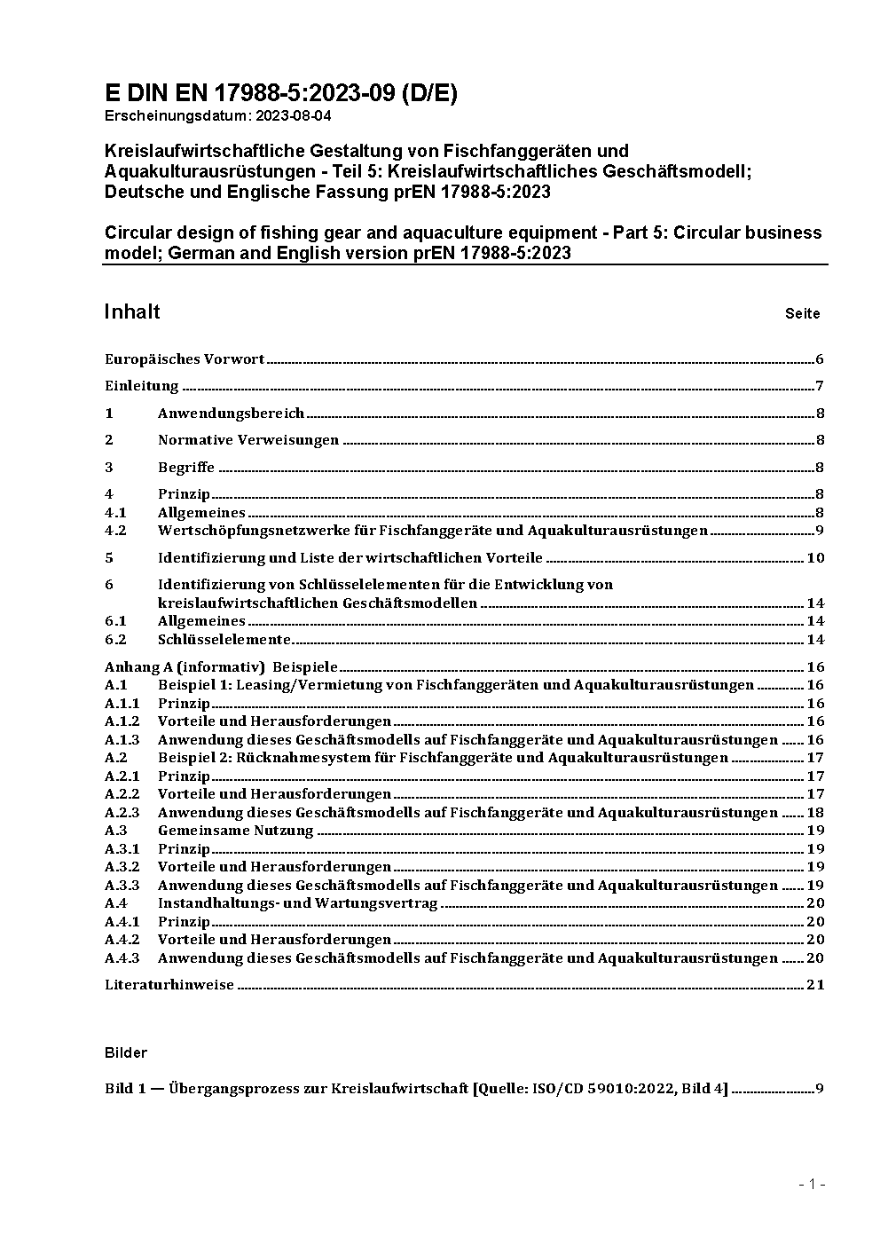Kreislaufwirtschaftliche Gestaltung von Fischfanggeräten und Aquakulturausrüstungen - Teil 5: Kreislaufwirtschaftliches Geschäftsmodell; Deutsche und Englische Fassung prEN 17988-5:2023