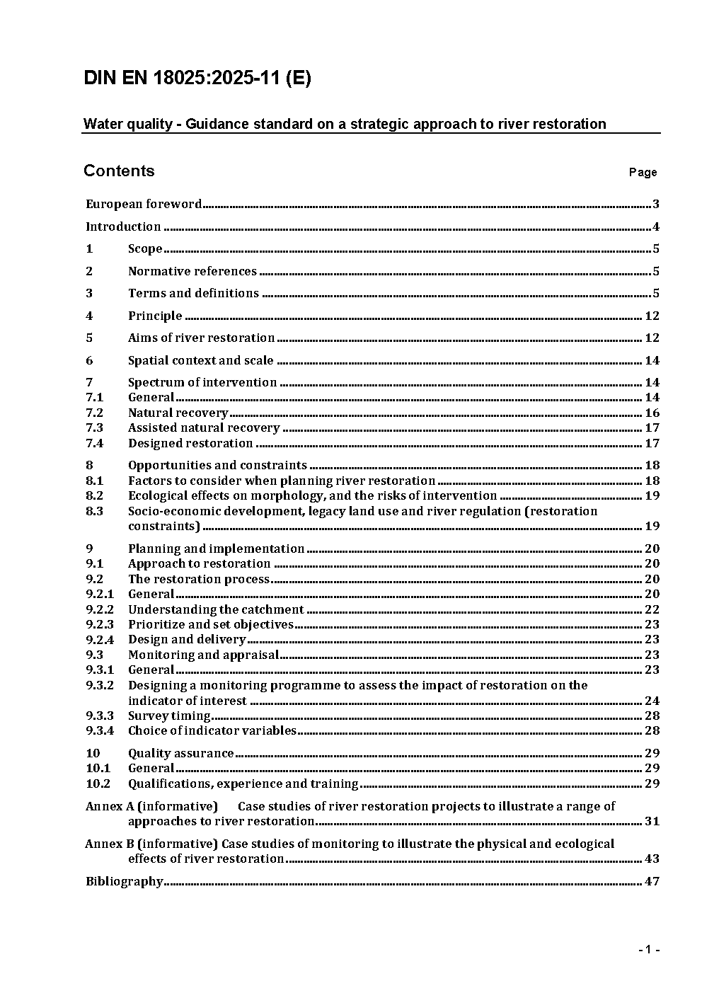 Water quality - Guidance standard on a strategic approach to river restoration; German version EN 18025:2025