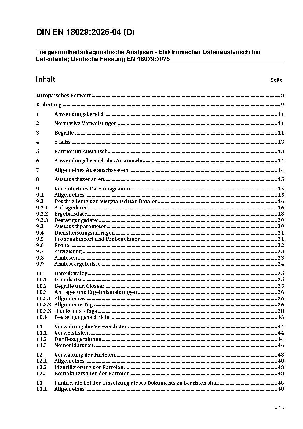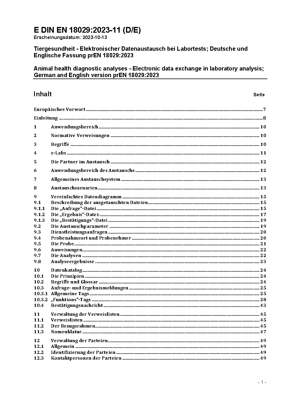Tiergesundheit - Elektronischer Datenaustausch bei Labortests; Deutsche und Englische Fassung prEN 18029:2023