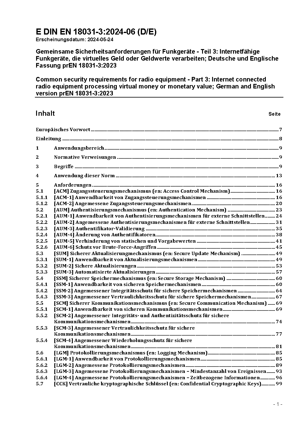 Gemeinsame Sicherheitsanforderungen für Funkanlagen - Teil 3: Internetfähige Funkanlagen, die virtuelles Geld oder Geldwerte verarbeiten; Deutsche Fassung EN 18031-3:2024