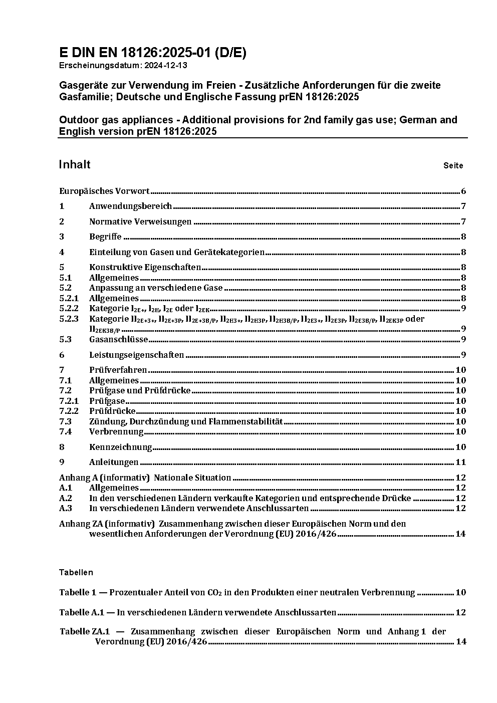 Gasgeräte zur Verwendung im Freien - Zusätzliche Anforderungen für die zweite Gasfamilie; Deutsche und Englische Fassung prEN 18126:2025