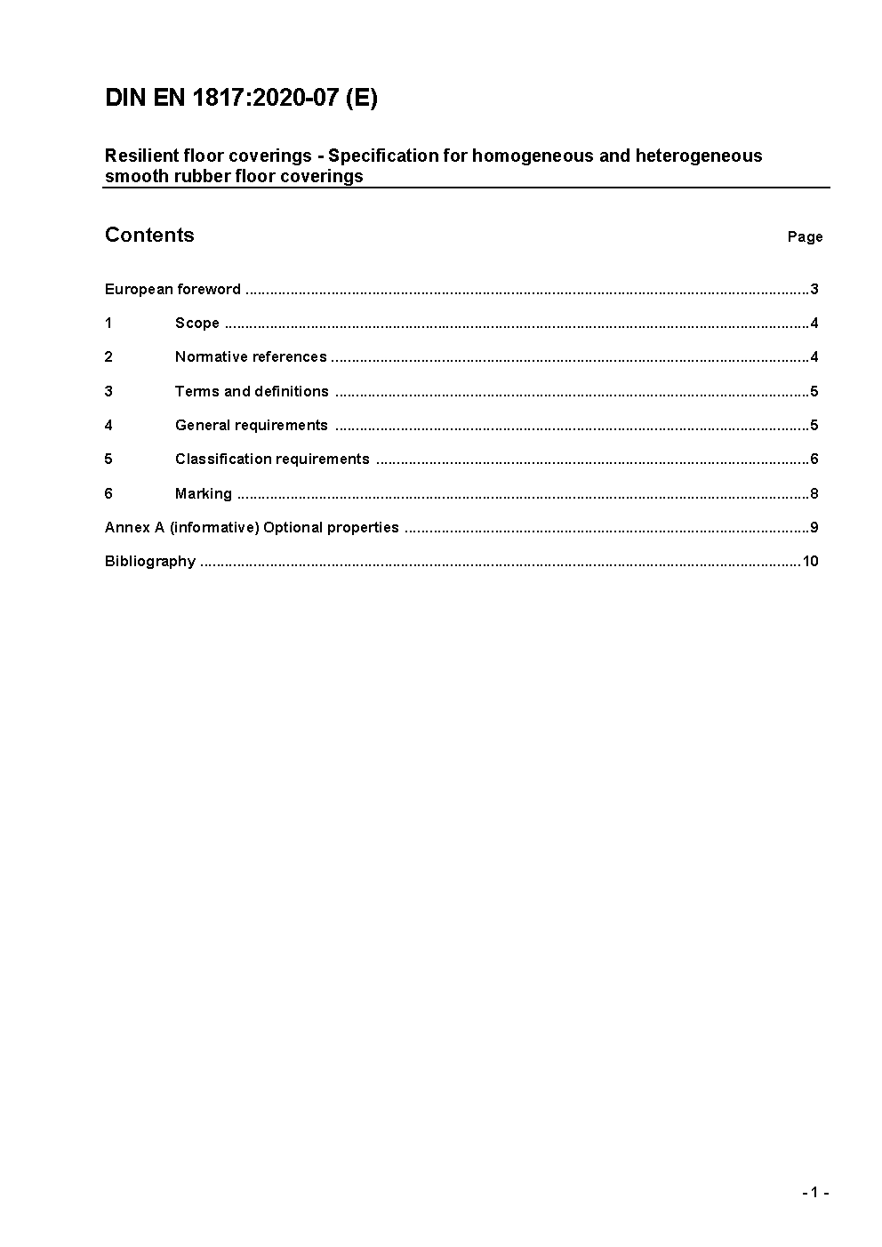 Resilient floor coverings - Specification for homogeneous and heterogeneous smooth rubber floor coverings; German version EN 1817:2010