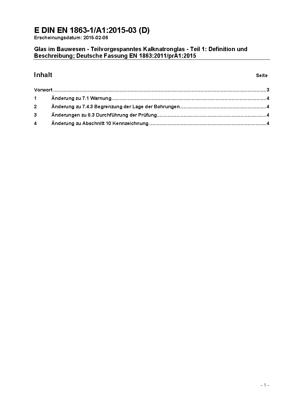 Glas im Bauwesen - Teilvorgespanntes Kalknatronglas - Teil 1: Definition und Beschreibung; Deutsche Fassung FprEN 1863-1:2011