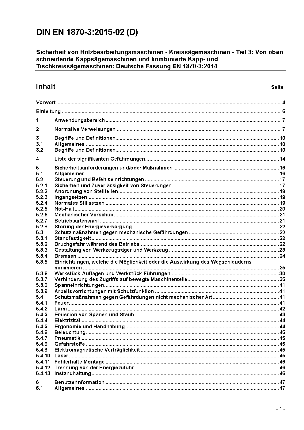 Sicherheit von Holzbearbeitungsmaschinen - Kreissägemaschinen - Teil 3: Von oben schneidende Kappsägemaschinen und kombinierte Kapp- und Tischkreissägemaschinen; Deutsche Fassung EN 1870-3:2001+A1:2009 / Achtung: Daneben gilt DIN EN 1870-3 (2002-02) noch bis 2009-12-28.
