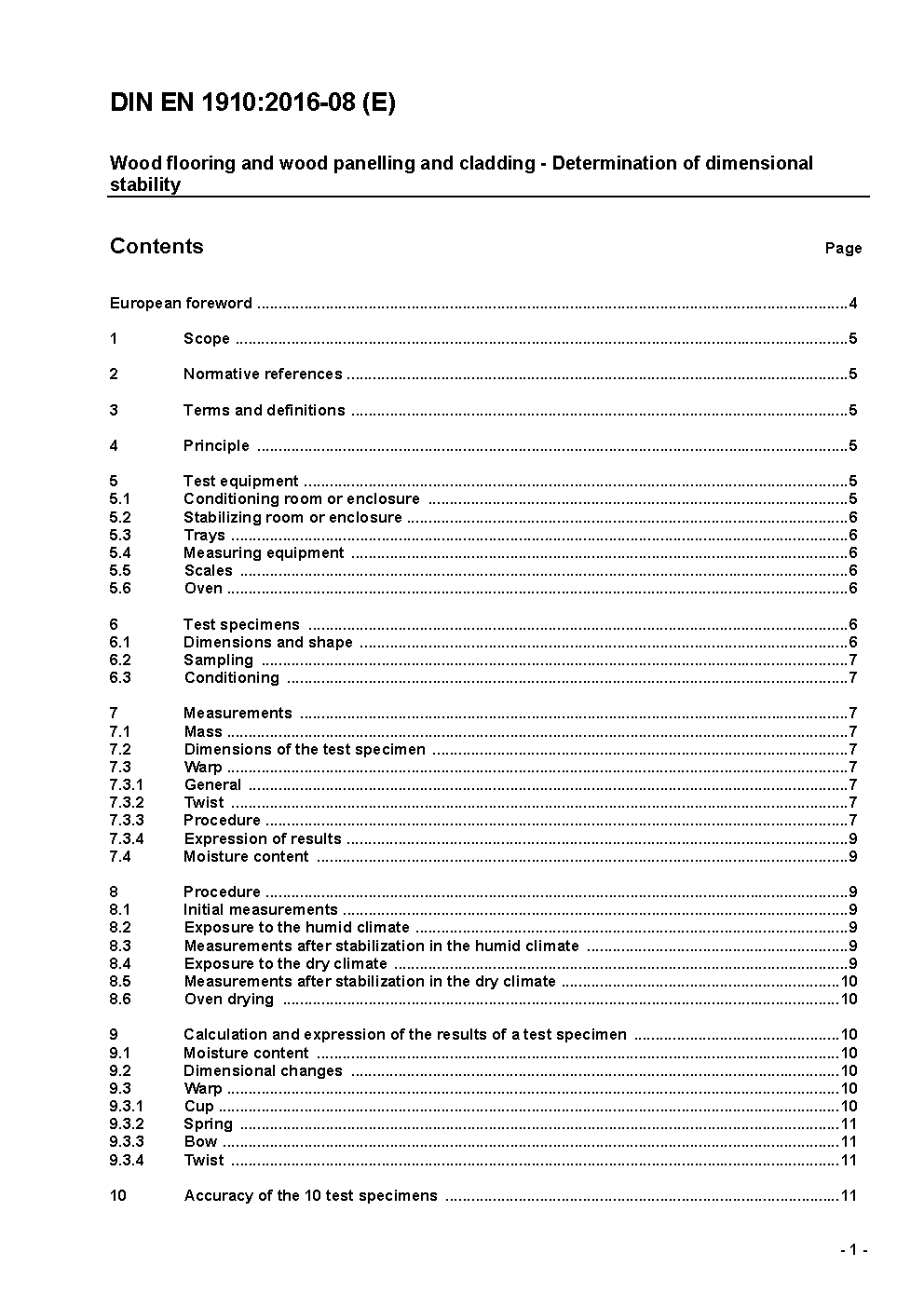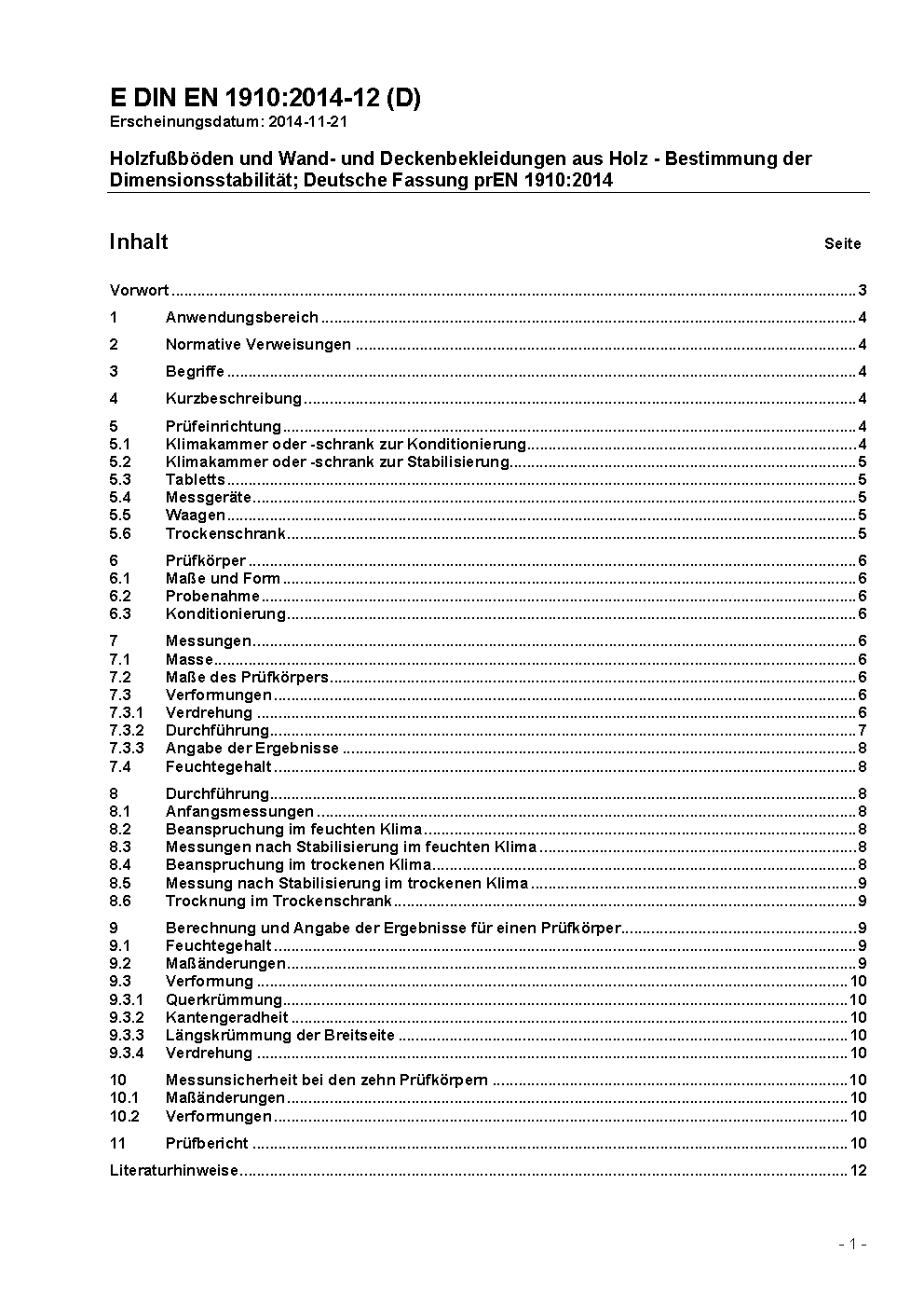 Parkett und andere Holzfußböden und Wand- und Deckenbekleidungen aus Holz - Bestimmung der Dimensionsstabilität; Deutsche Fassung EN 1910:2000