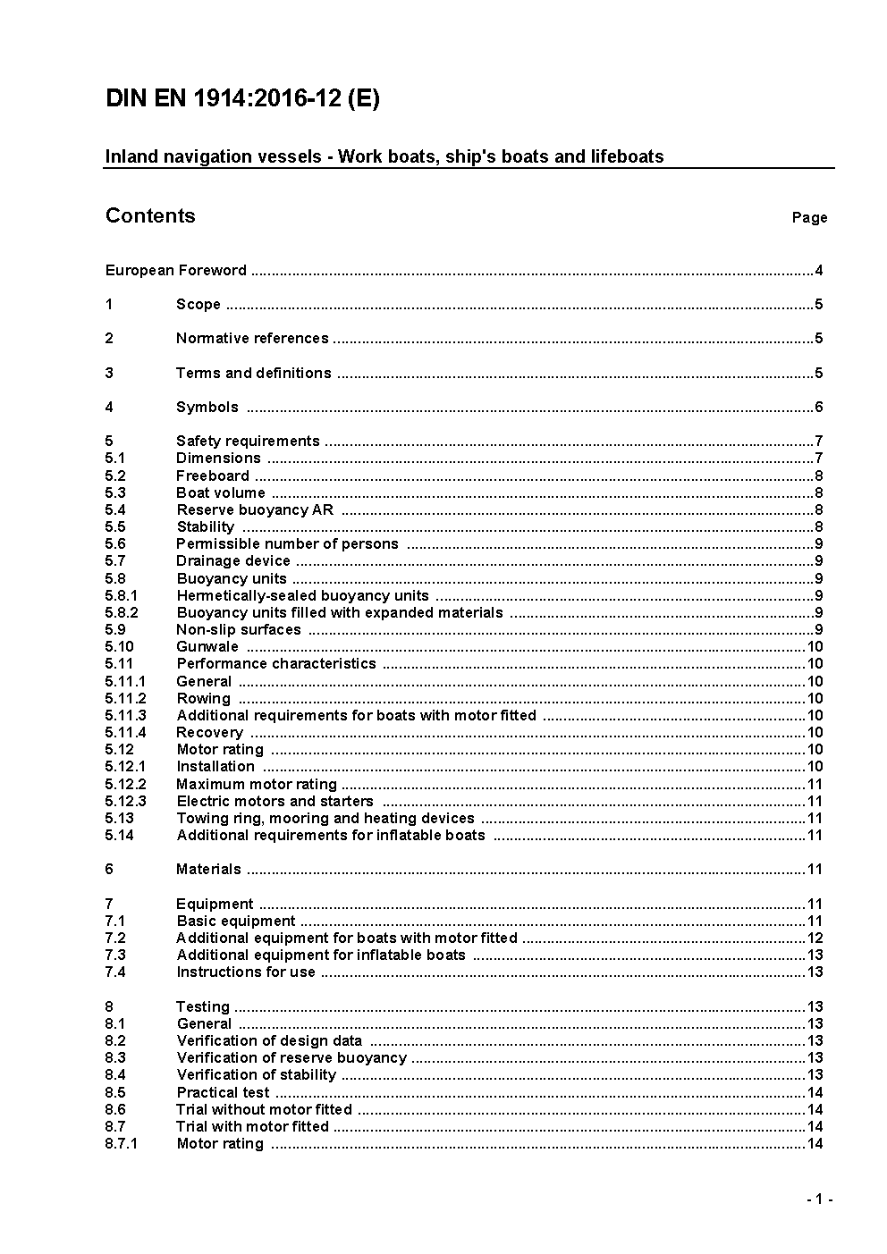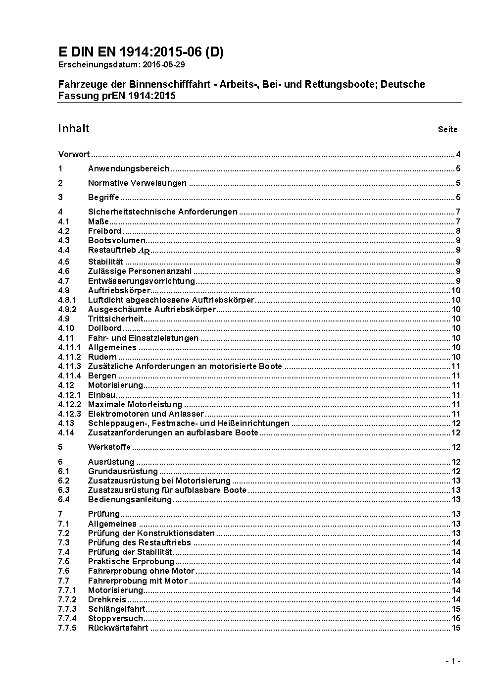 Fahrzeuge der Binnenschifffahrt - Arbeits-, Bei- und Rettungsboote; Deutsche Fassung EN 1914:2009