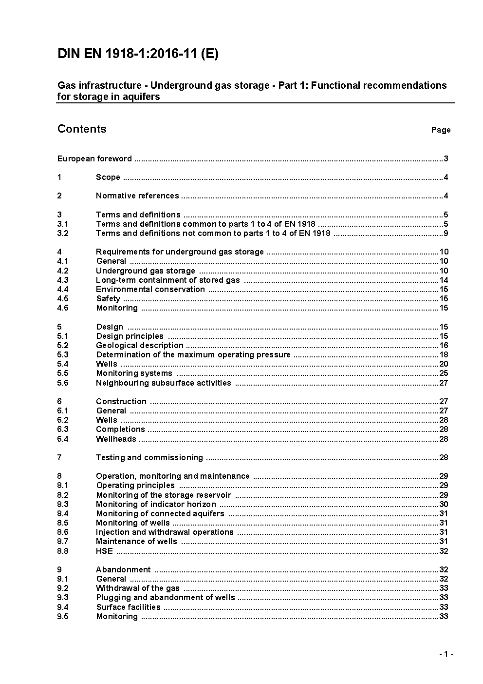 Gas infrastructure - Underground gas storage - Part 1: Functional recommendations for storage in aquifers; German version EN 1918-1:2016.